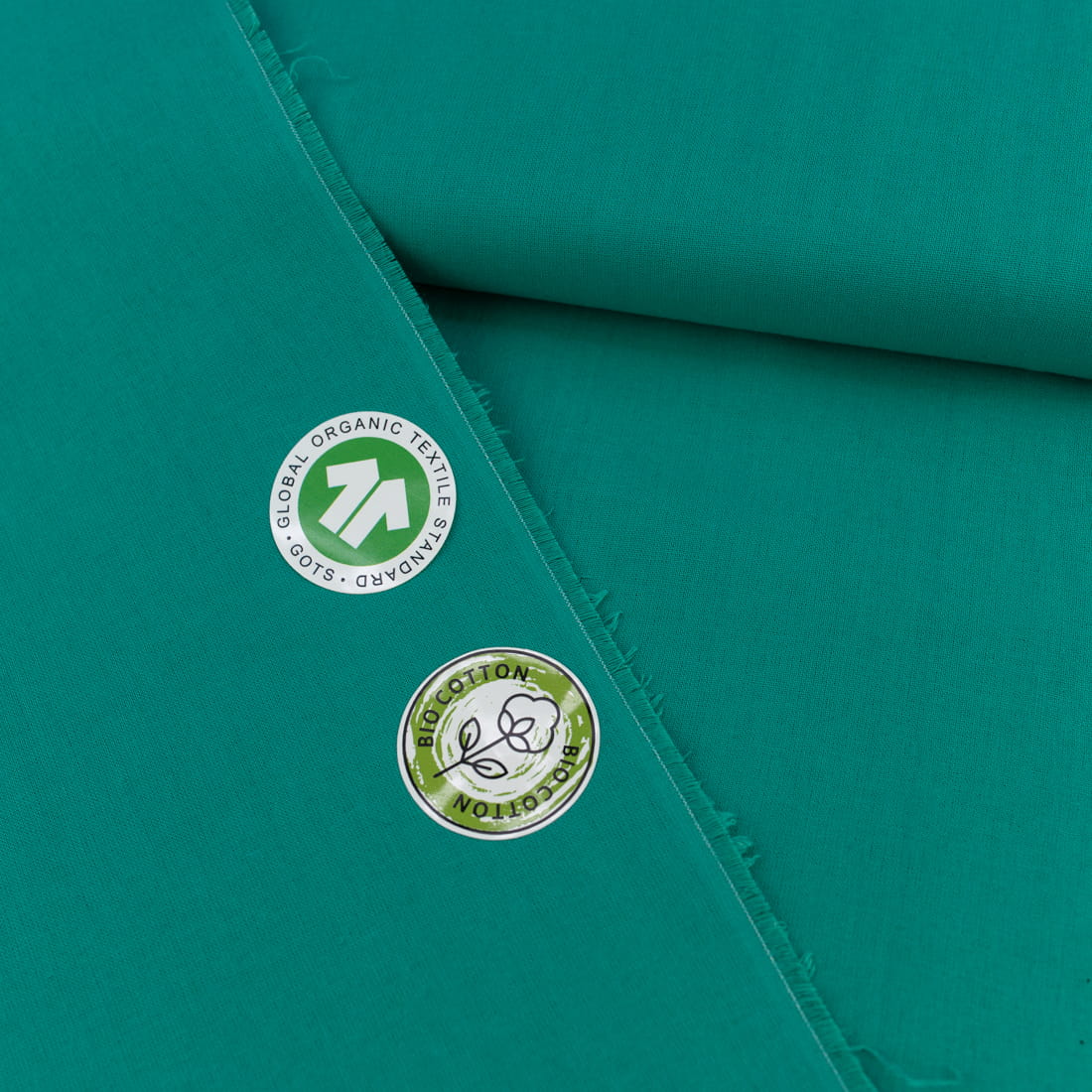Bawełna Popelina Organiczna ciemny zielono turkusowy
