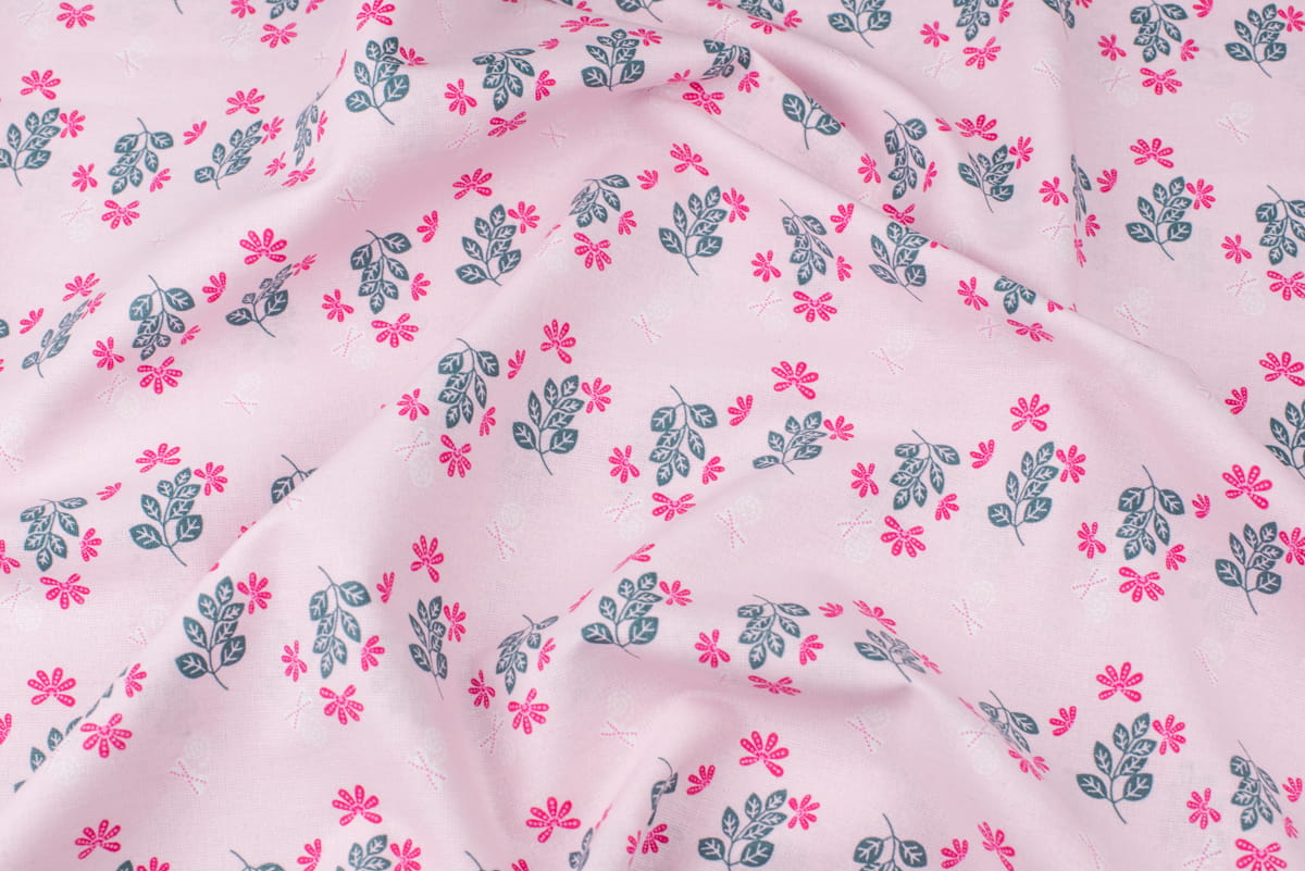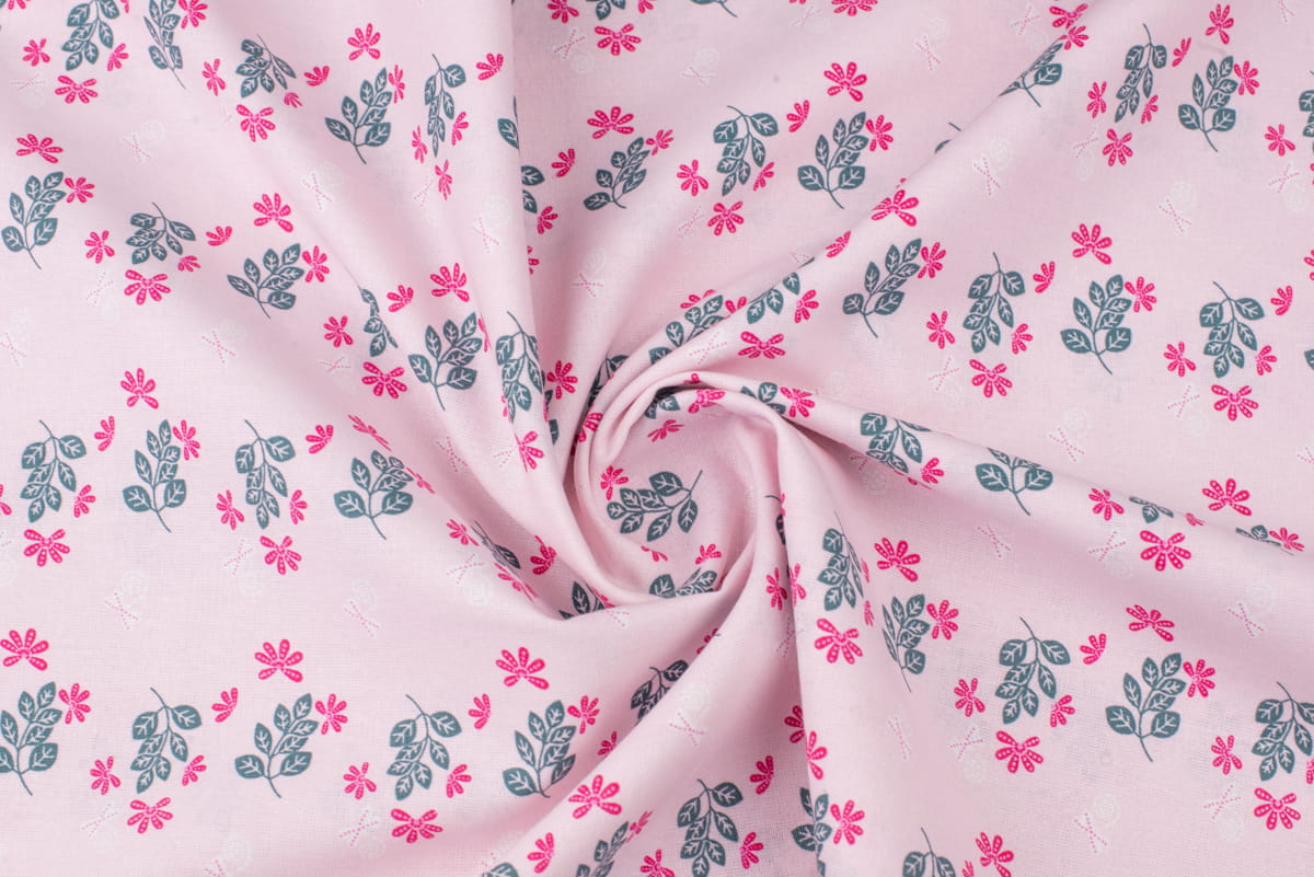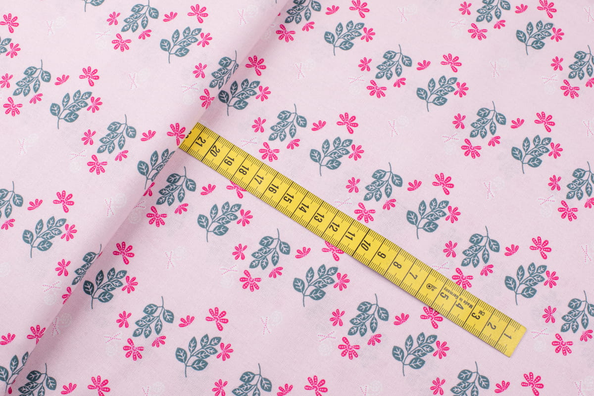 Bawełna popelina organiczna wzór kwiaty kolor jasny różowy