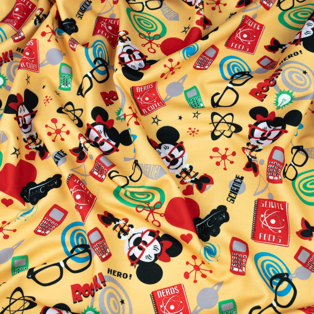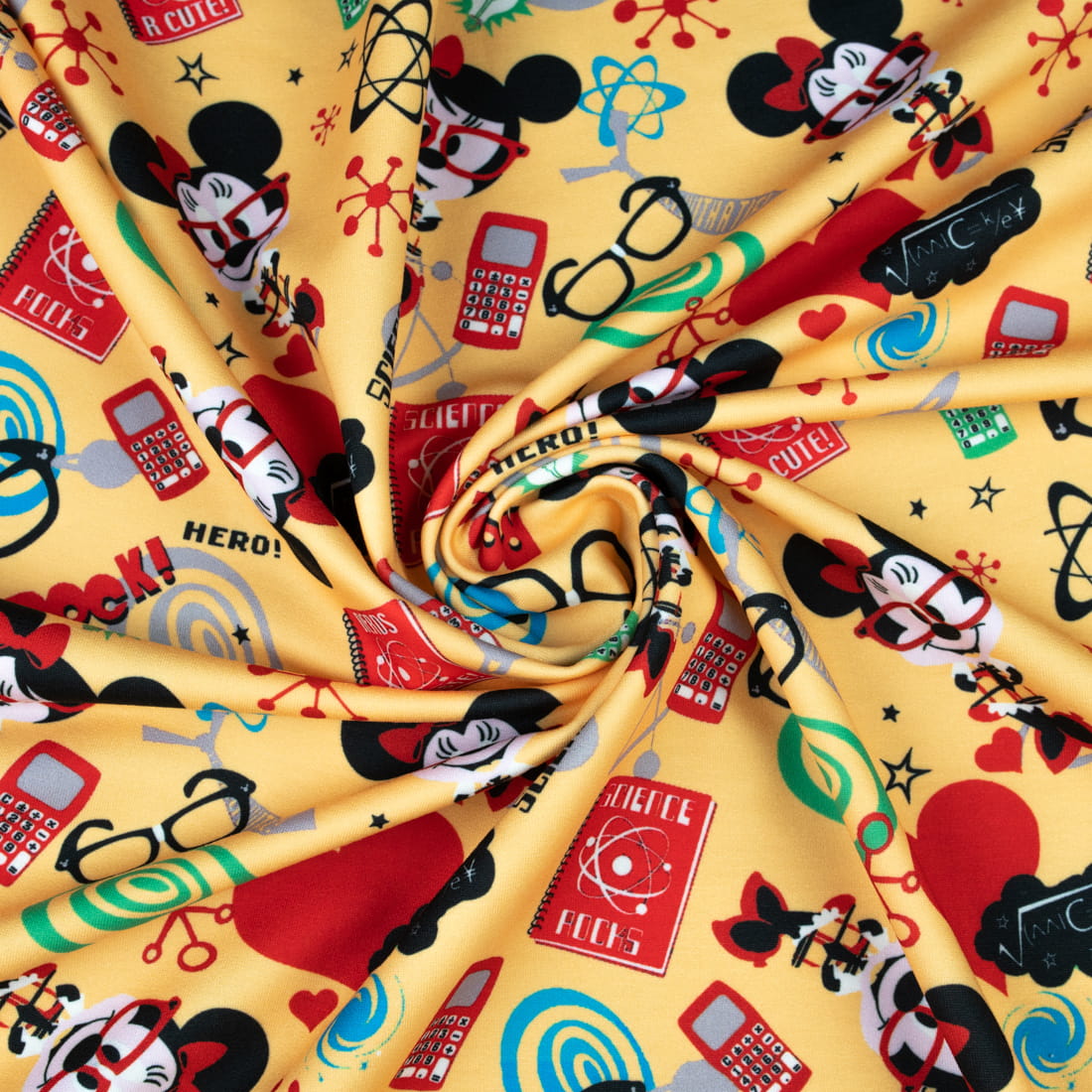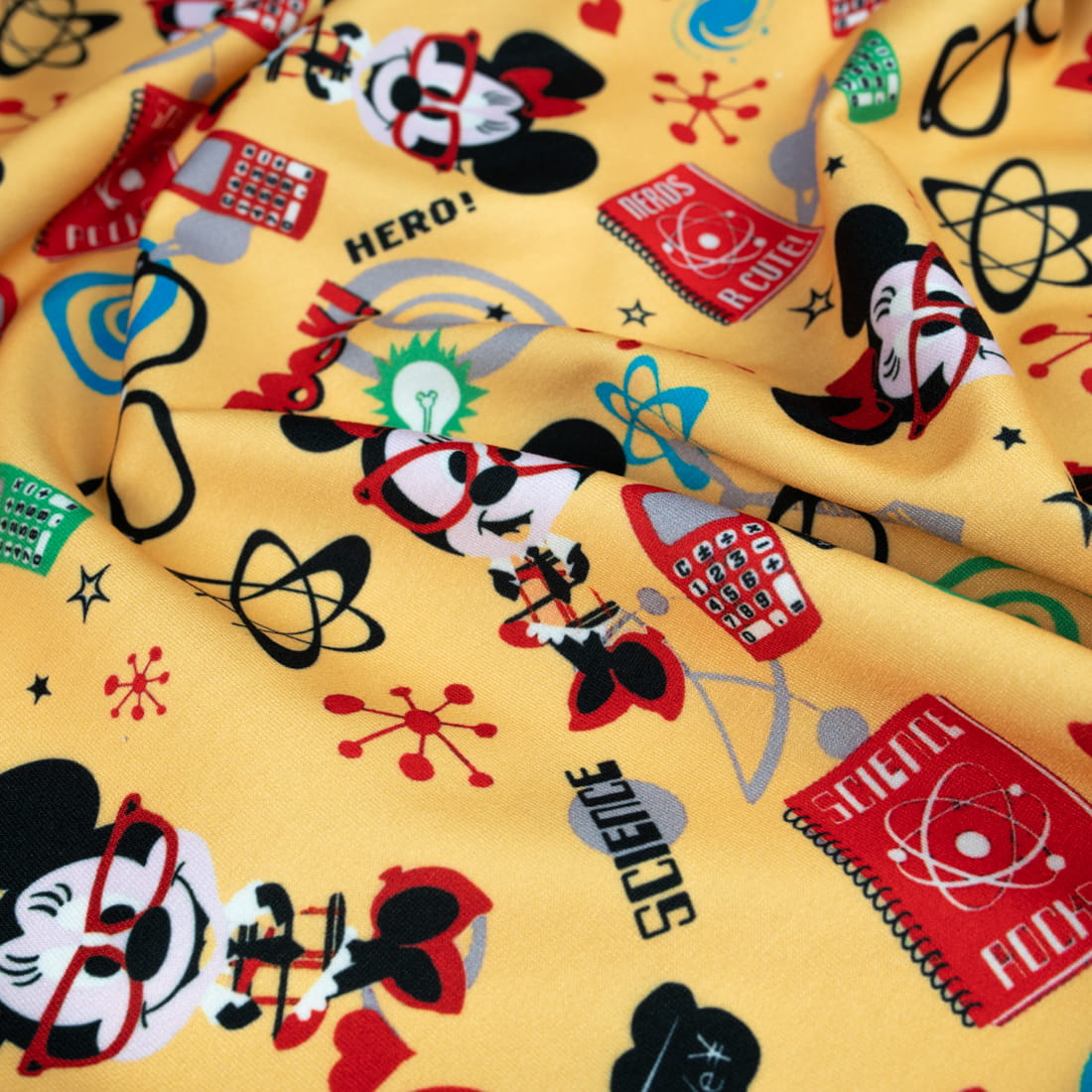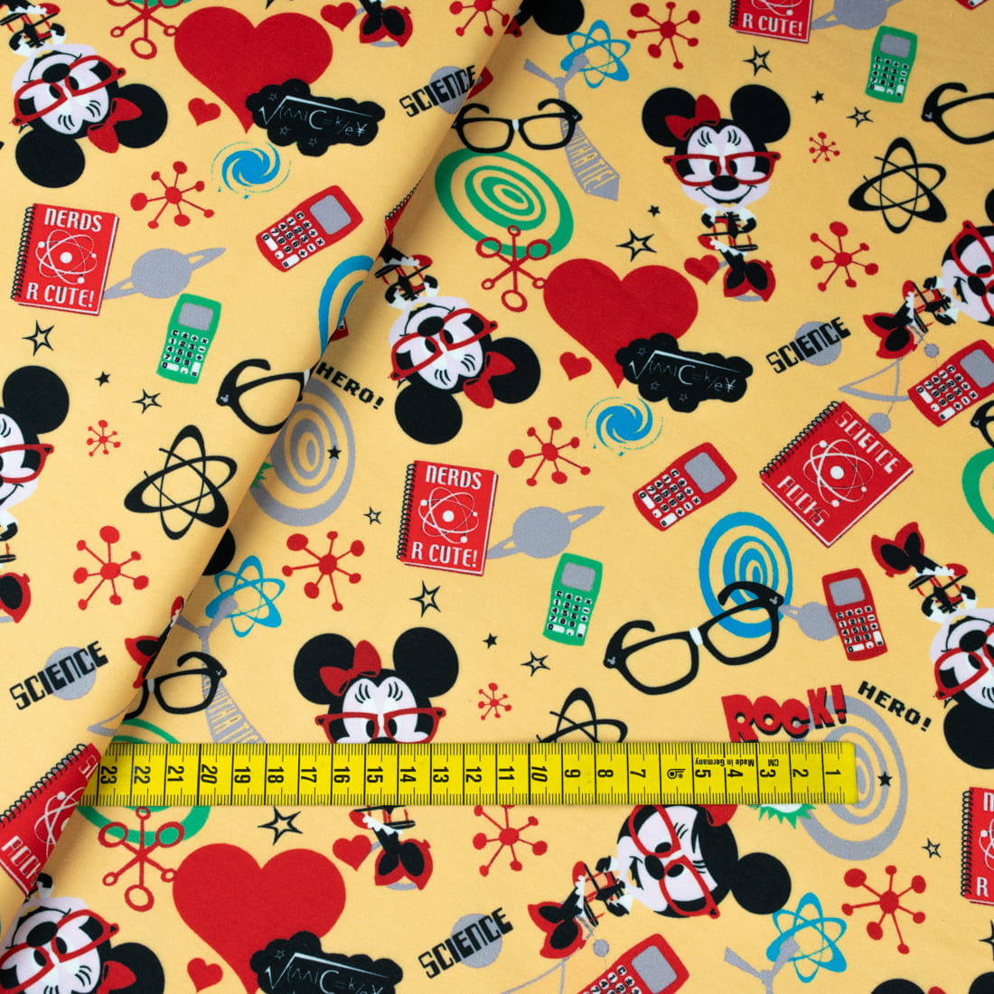 Dzianina Dresówka pętelka wzór Mysz kolor żółty