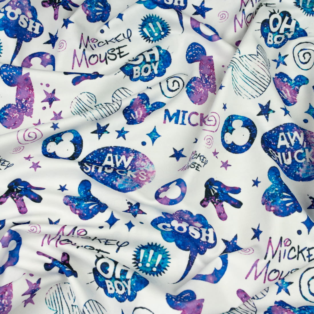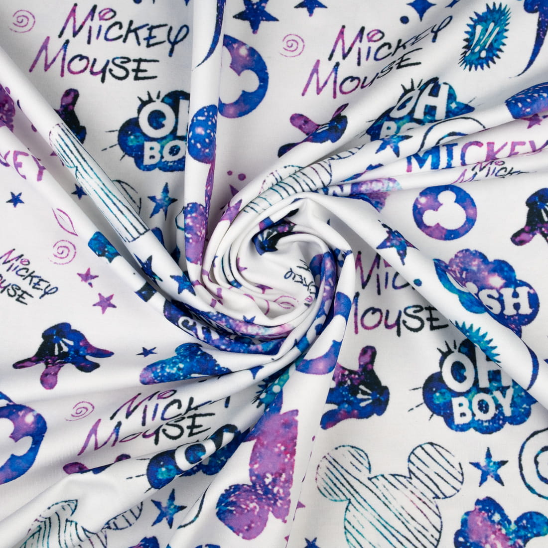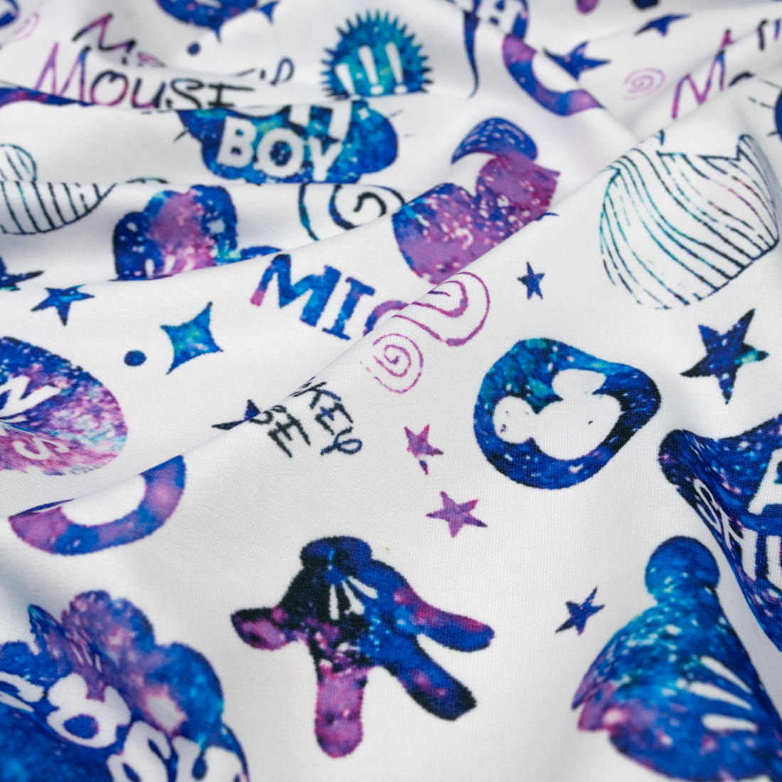 Dzianina Dresówka pętelka wzór niebieski Mysz kolor biały