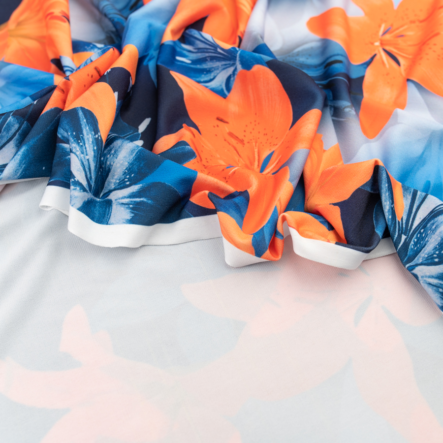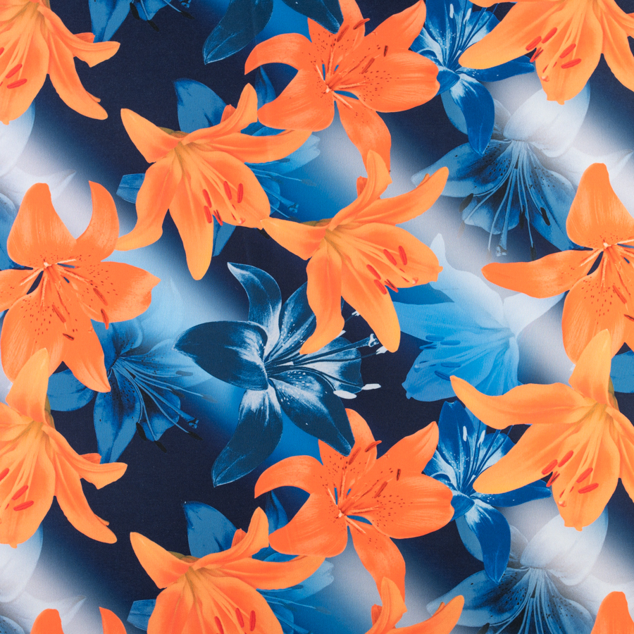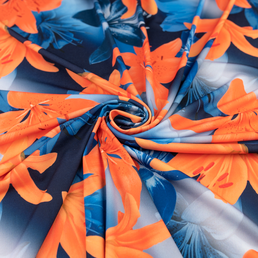 Dzianina ITY wzór kwiaty kolor niebiesko granatowy