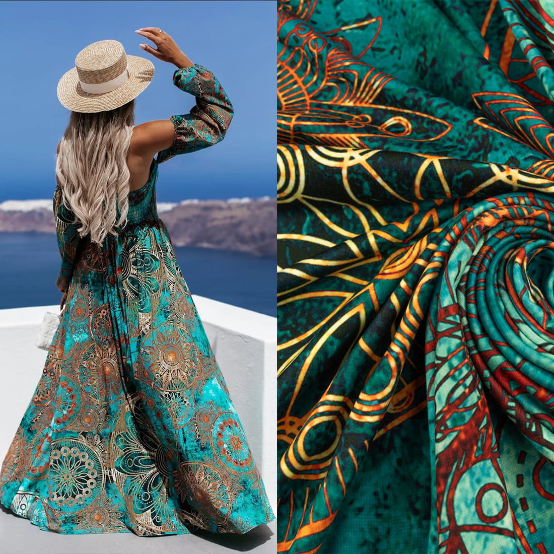 - Stylowy wzór: Orientalny motyw w odcieniach zieleni dodaje nowoczesności i elegancji każdej kreacji.
