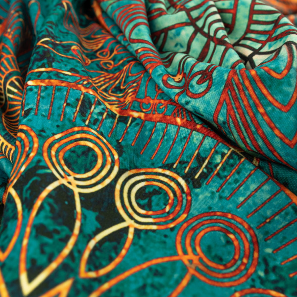 Dzianina ITY z orientalnym wzorem w odcieniach zieleni to wysokogatunkowy materiał poliestrowy z domieszką lycry. Charakteryzuje się dużą elastycznością, miękkością i delikatnością w dotyku, doskonale przylegając do ciała. Dzięki swoim właściwościom, materiał ten jest idealny do tworzenia zarówno codziennej odzieży, jak i strojów baletowych czy tanecznych. Dodatkowo, dzianina została zaprojektowana tak, aby efektywnie odprowadzać wilgoć, zapewniając komfort termiczny nawet podczas intensywnego wysiłku.