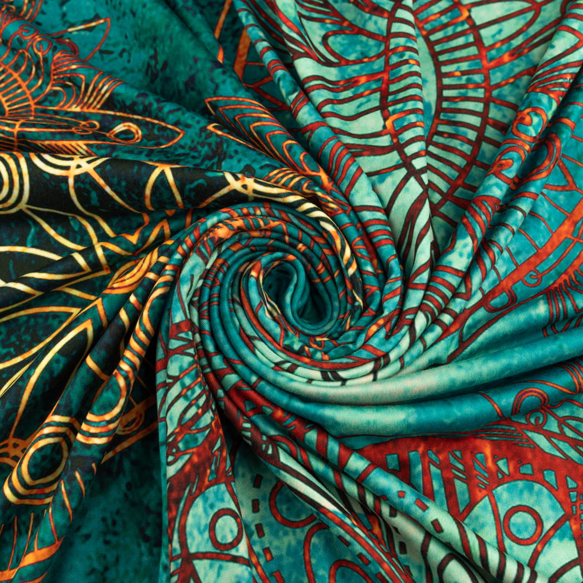 Dzianina ITY wzór orientalny odcienie zielonego
