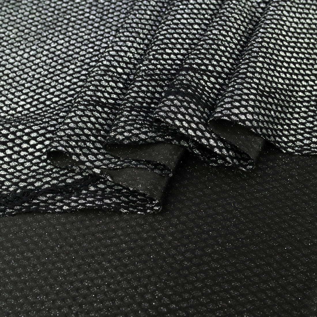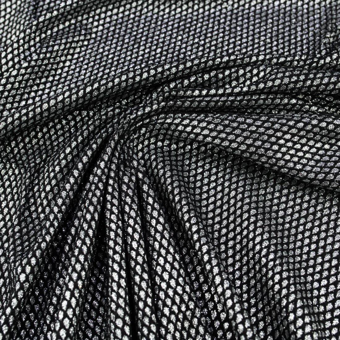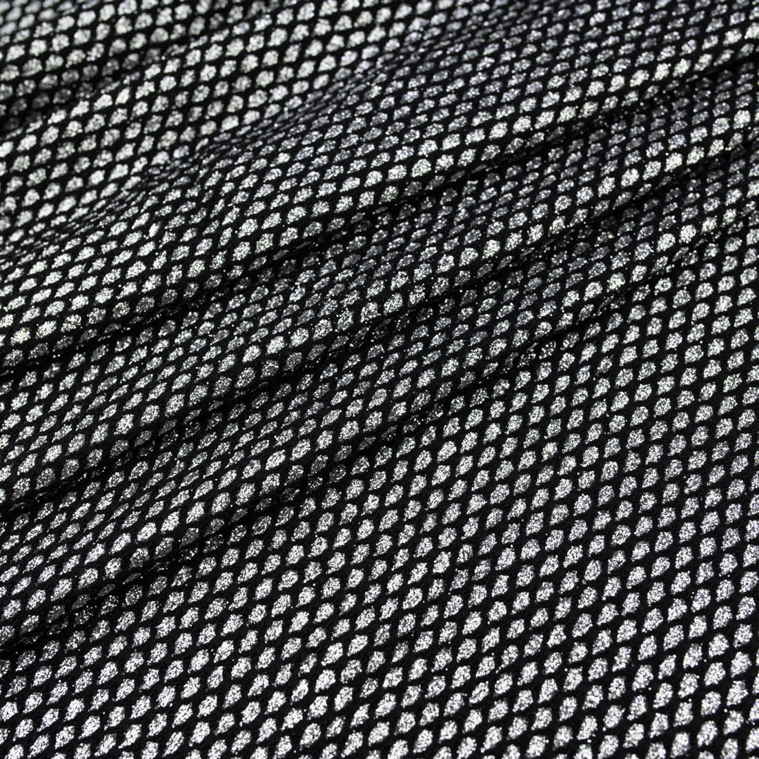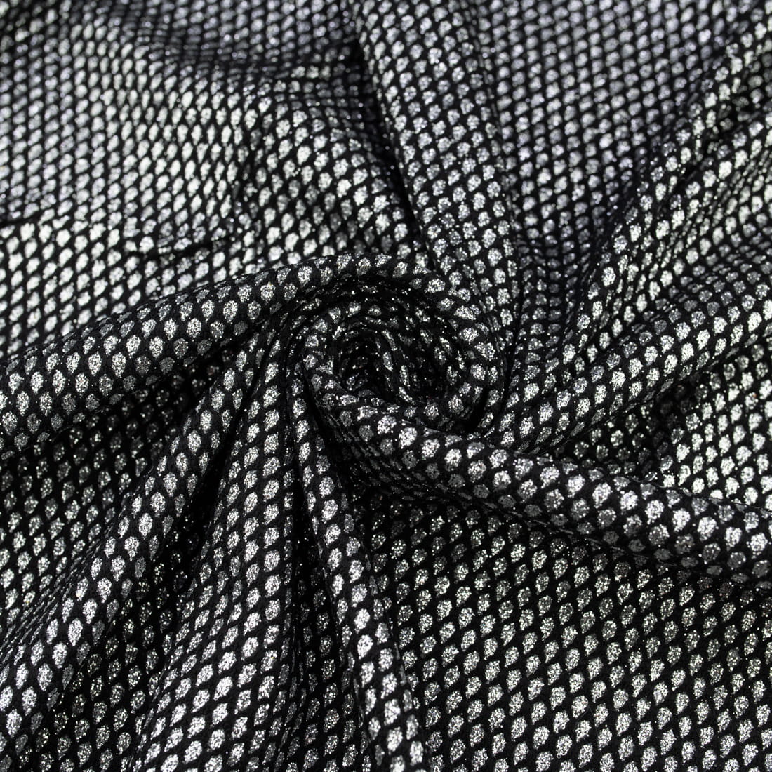 Dzianina Brokatowa – Srebrny Blask na Czarnym Tle