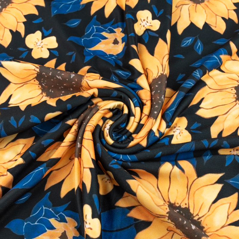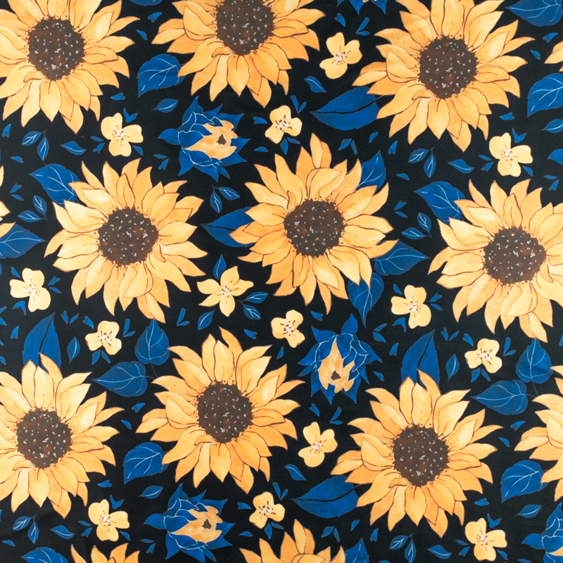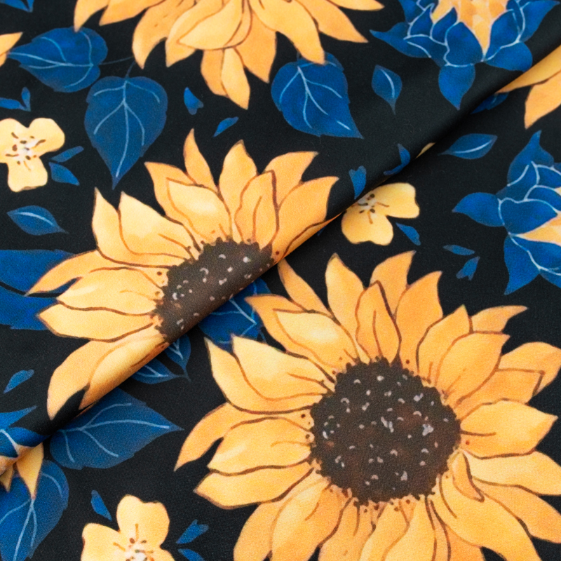 Dzianina jersey ITY Kimo w słoneczniki kolor czarny