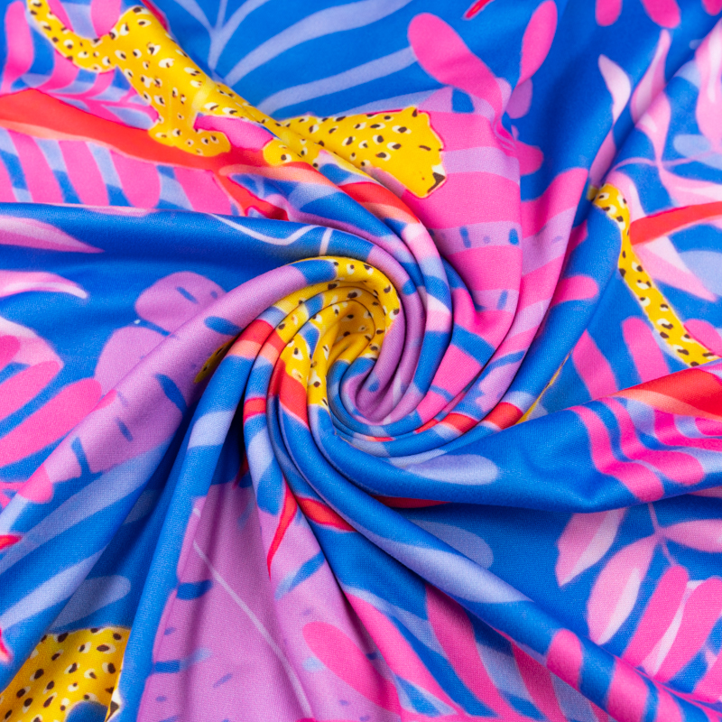 Dzianina jersey ITY Kimo wzór lampart kolor fioletowy