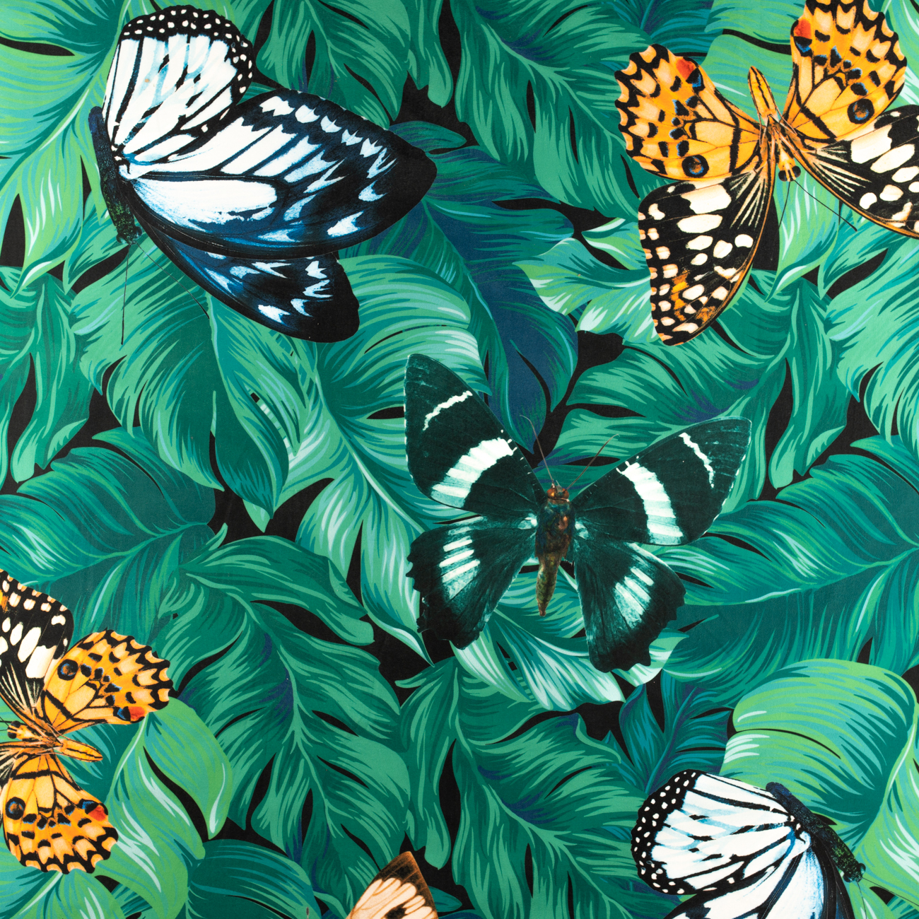 Dzianina jersey ITY Kimo wzór liście monstera kolor zielony