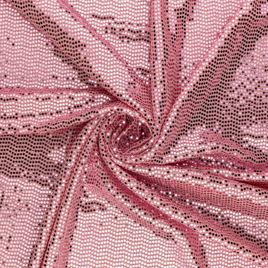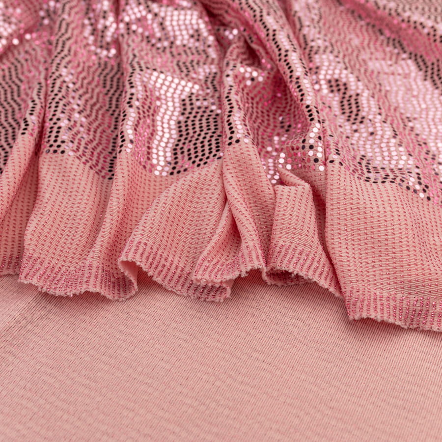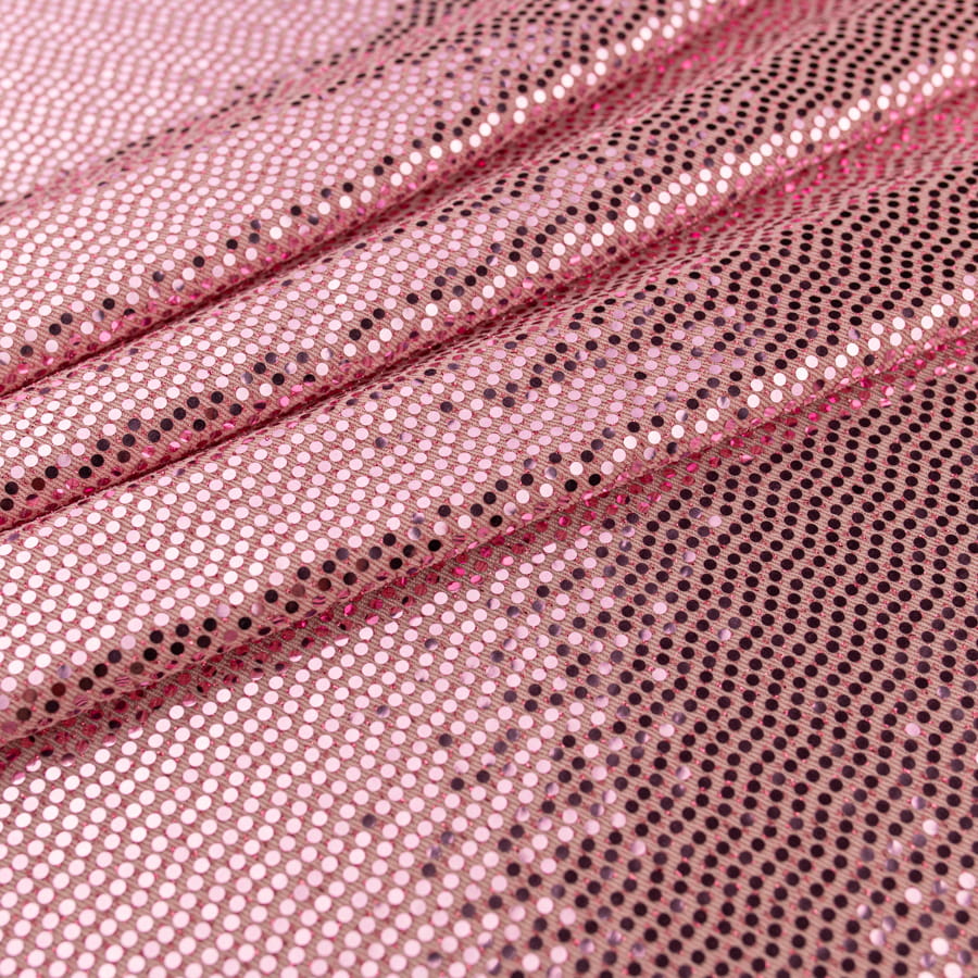 Dzianina na sukienki wzór błyszczące groszki kolor łososiowy