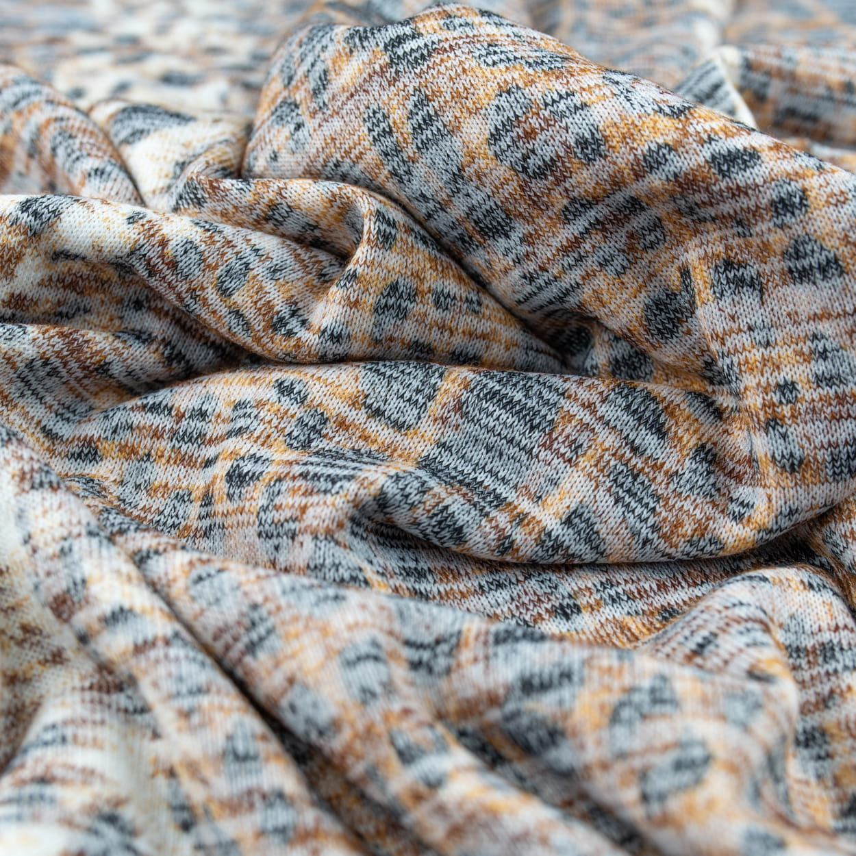 Dzianina swetrowa wzór panterka kolor brązowy