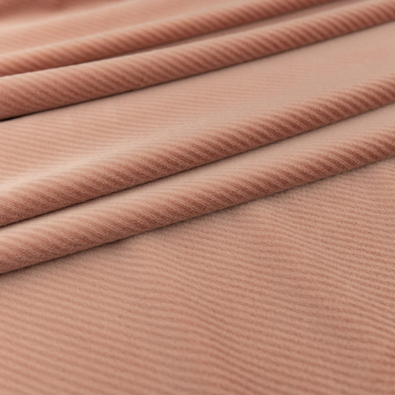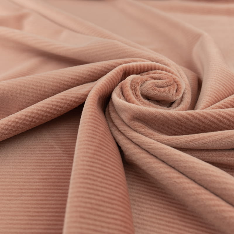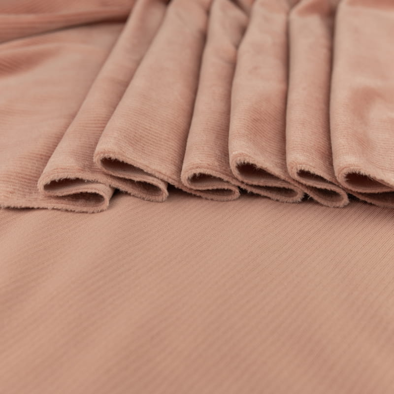 Dzianina welurowa soft prążkowana kolor beżowo różowy