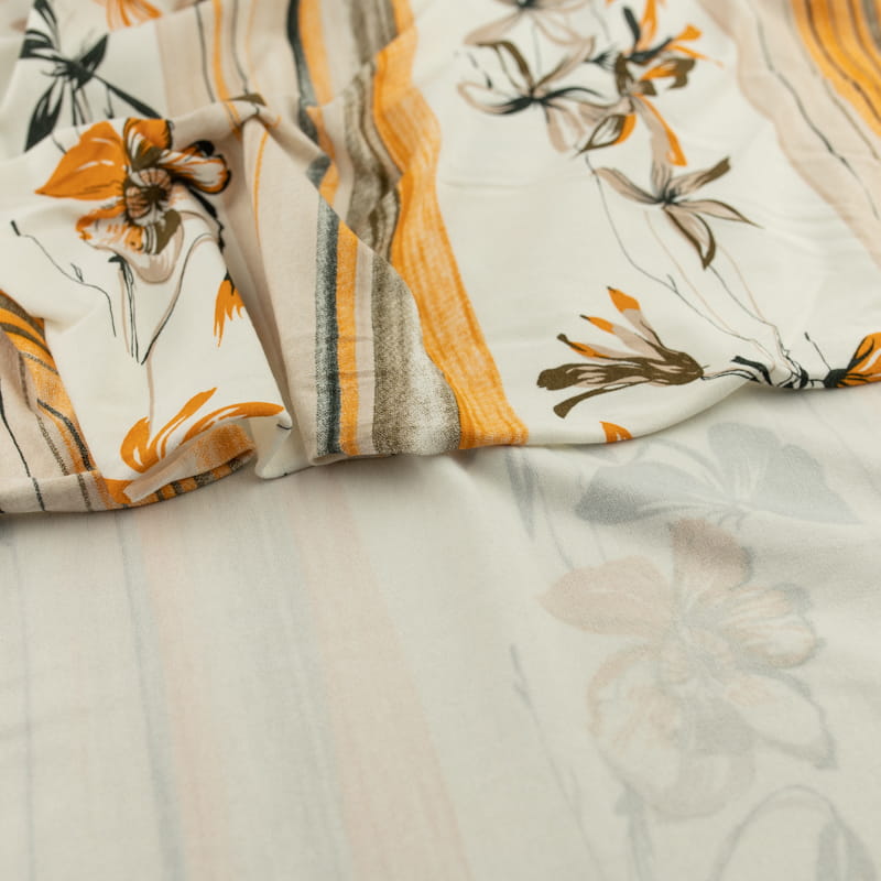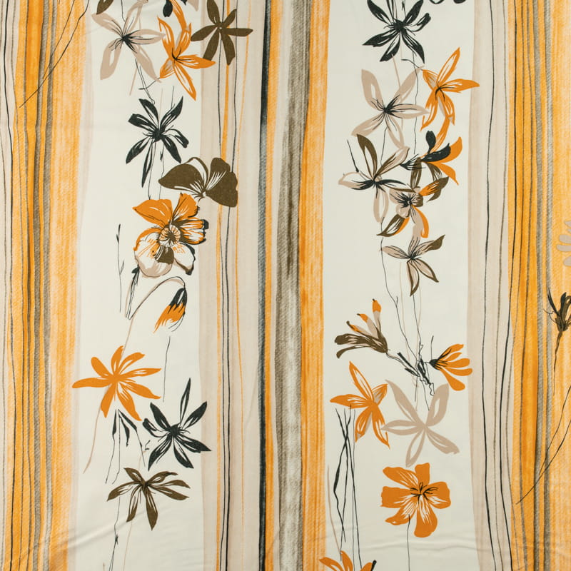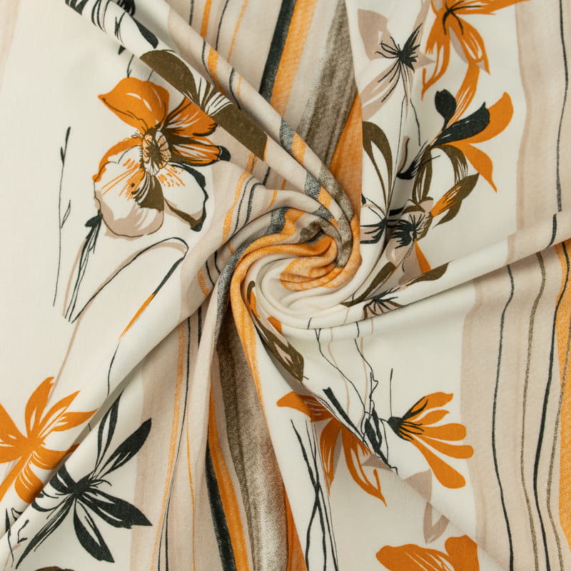 Dzianina wiskozowa wzór pasy i kwiaty kolor pomarańczowo beżowy
