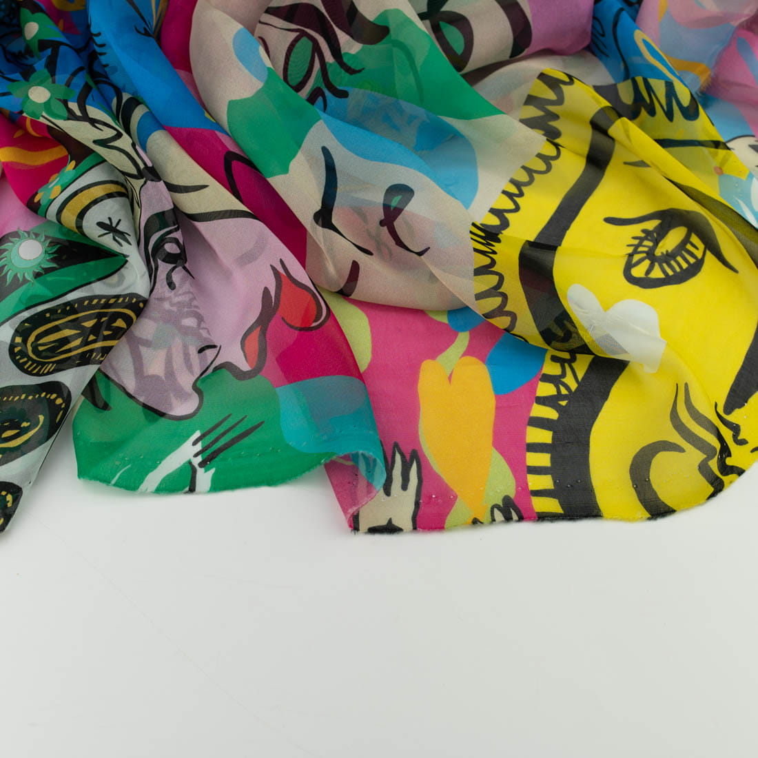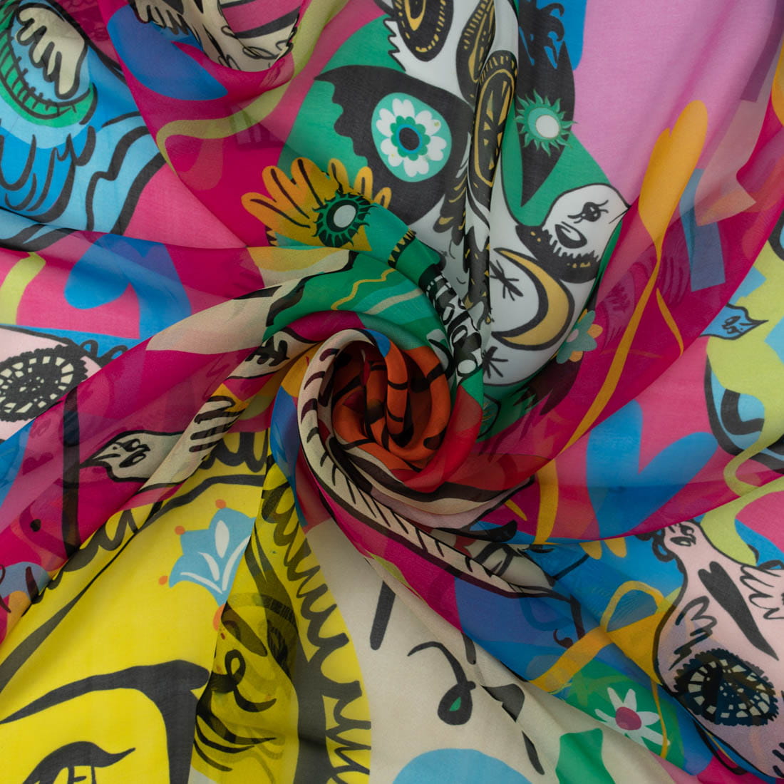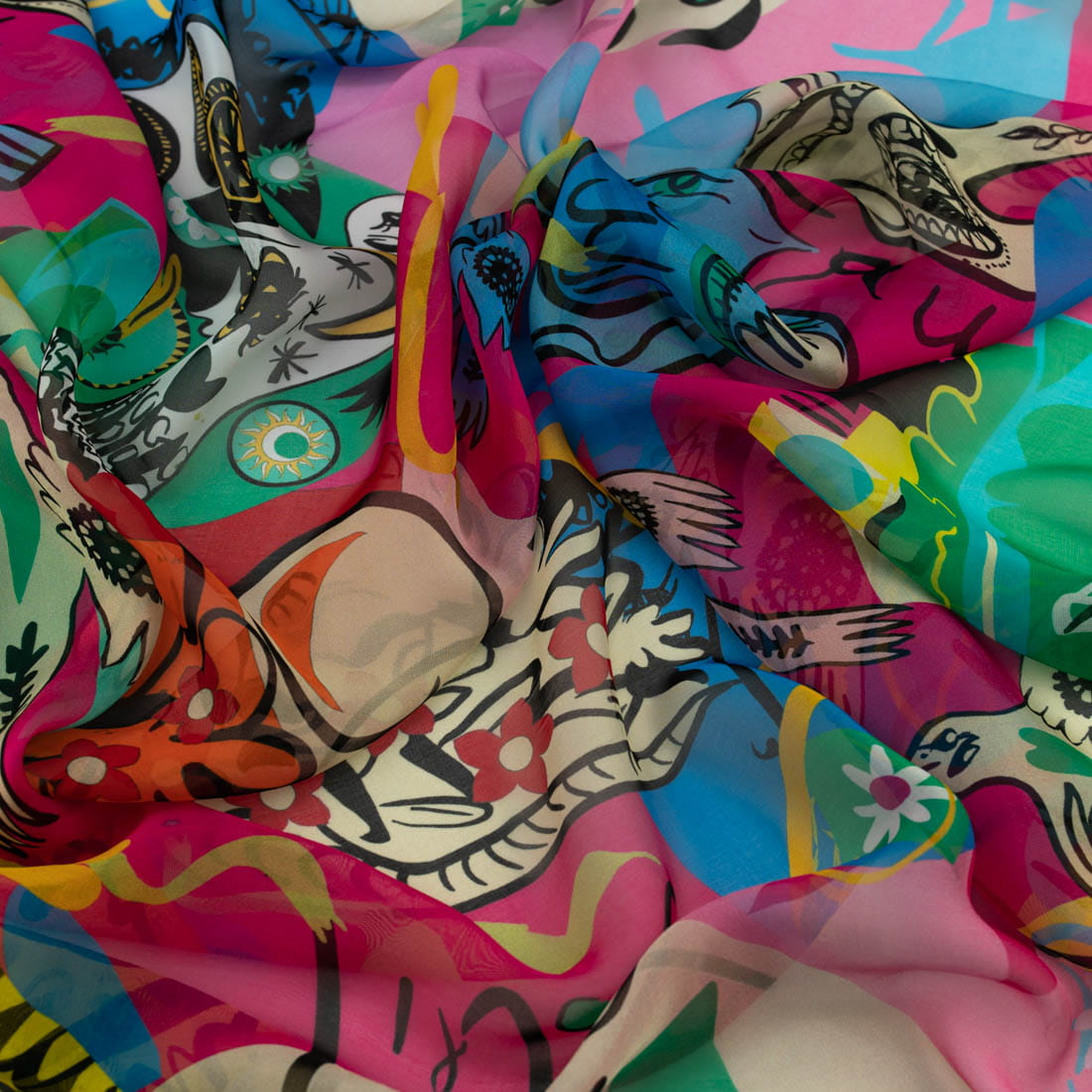Jedwab naturalny - szyfon kolor niebiesko różowy