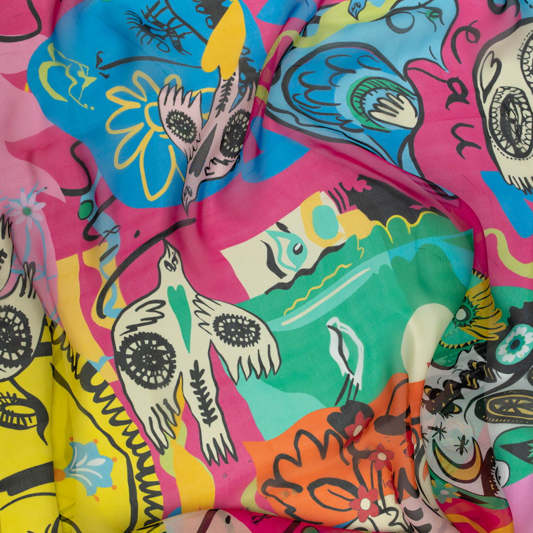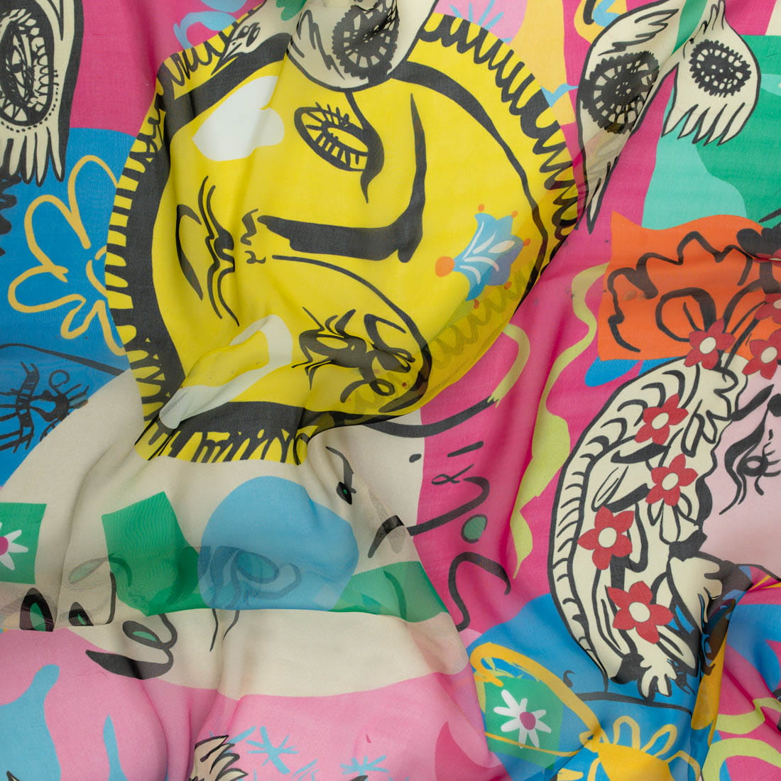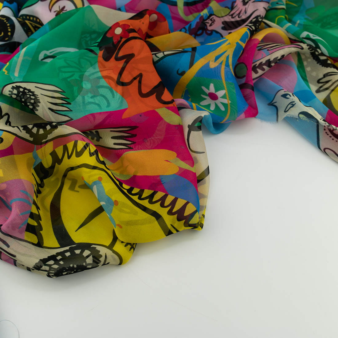 Jedwab naturalny - szyfon kolor niebiesko różowy