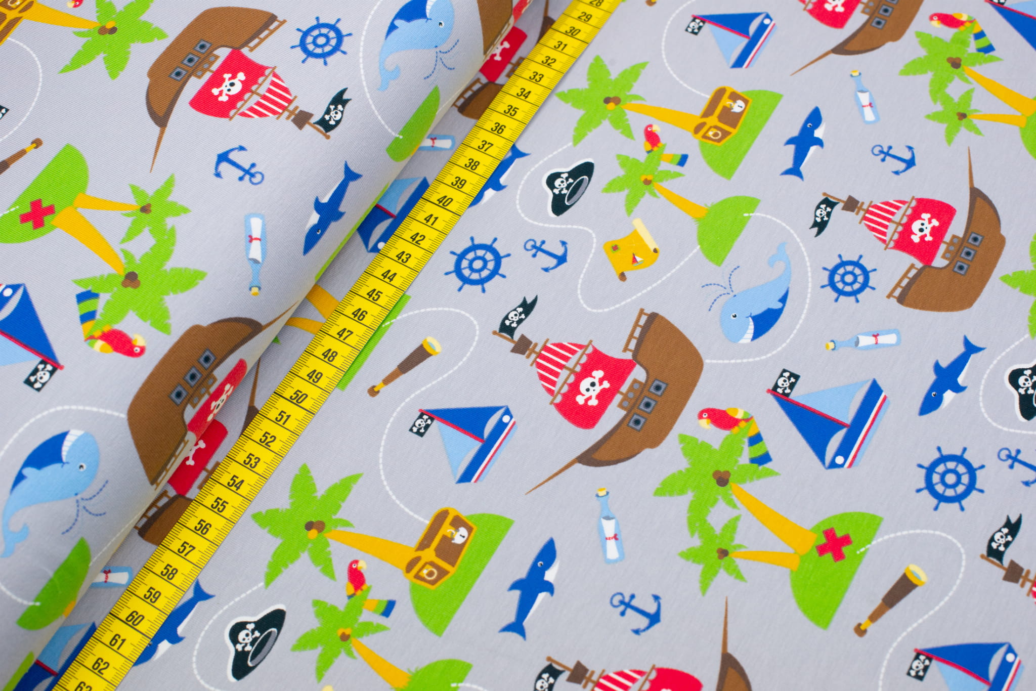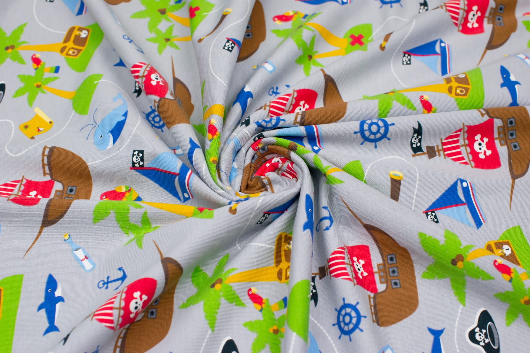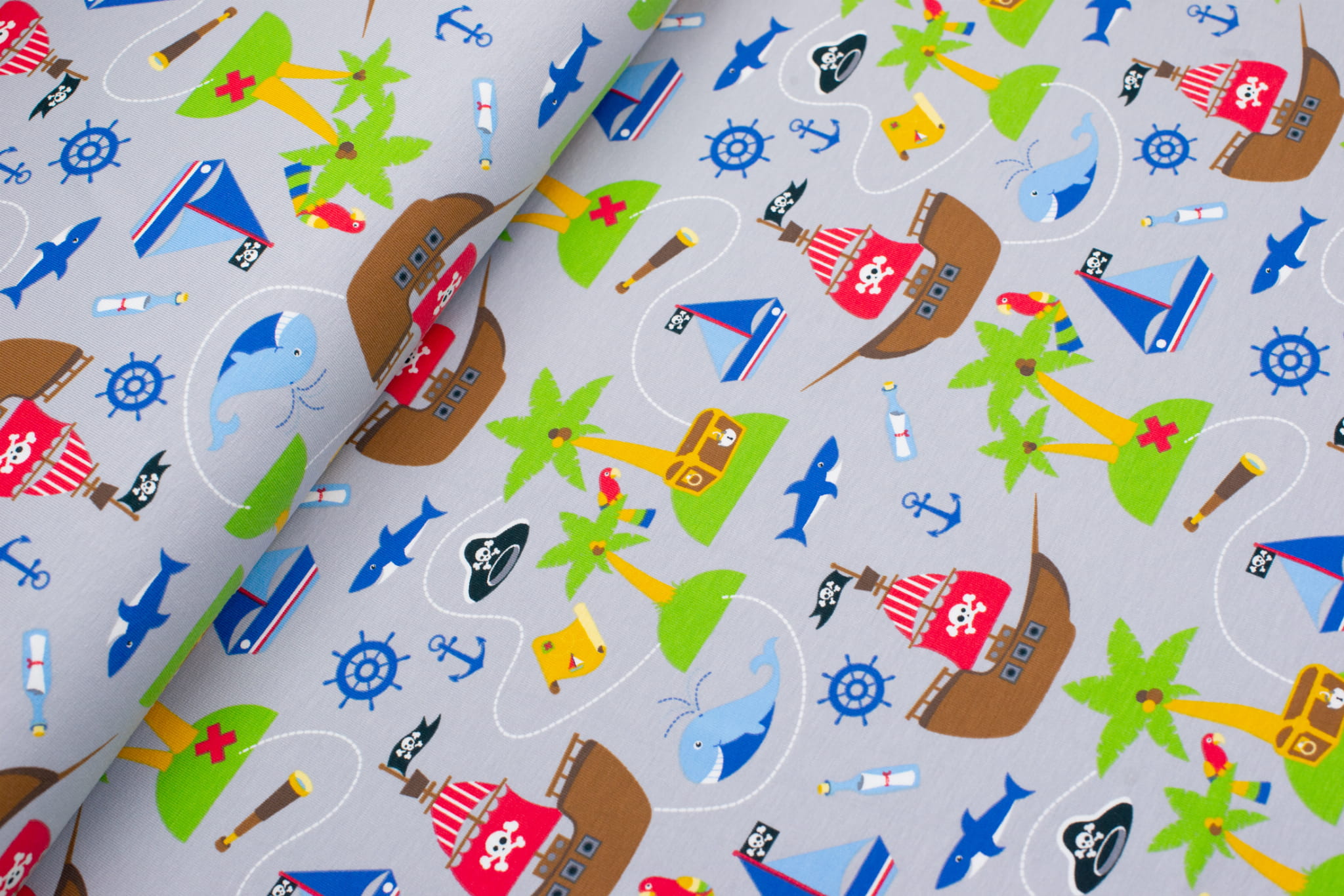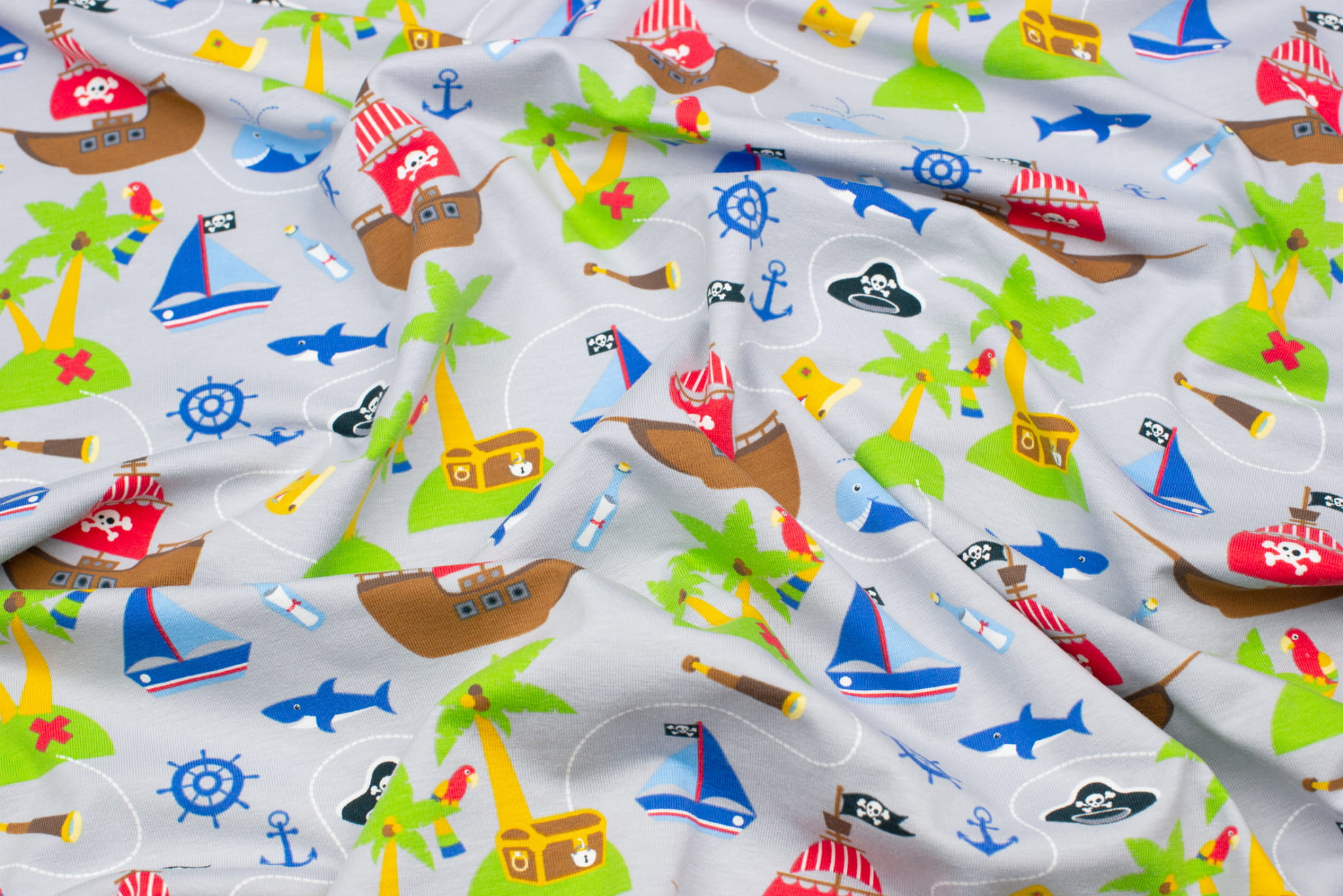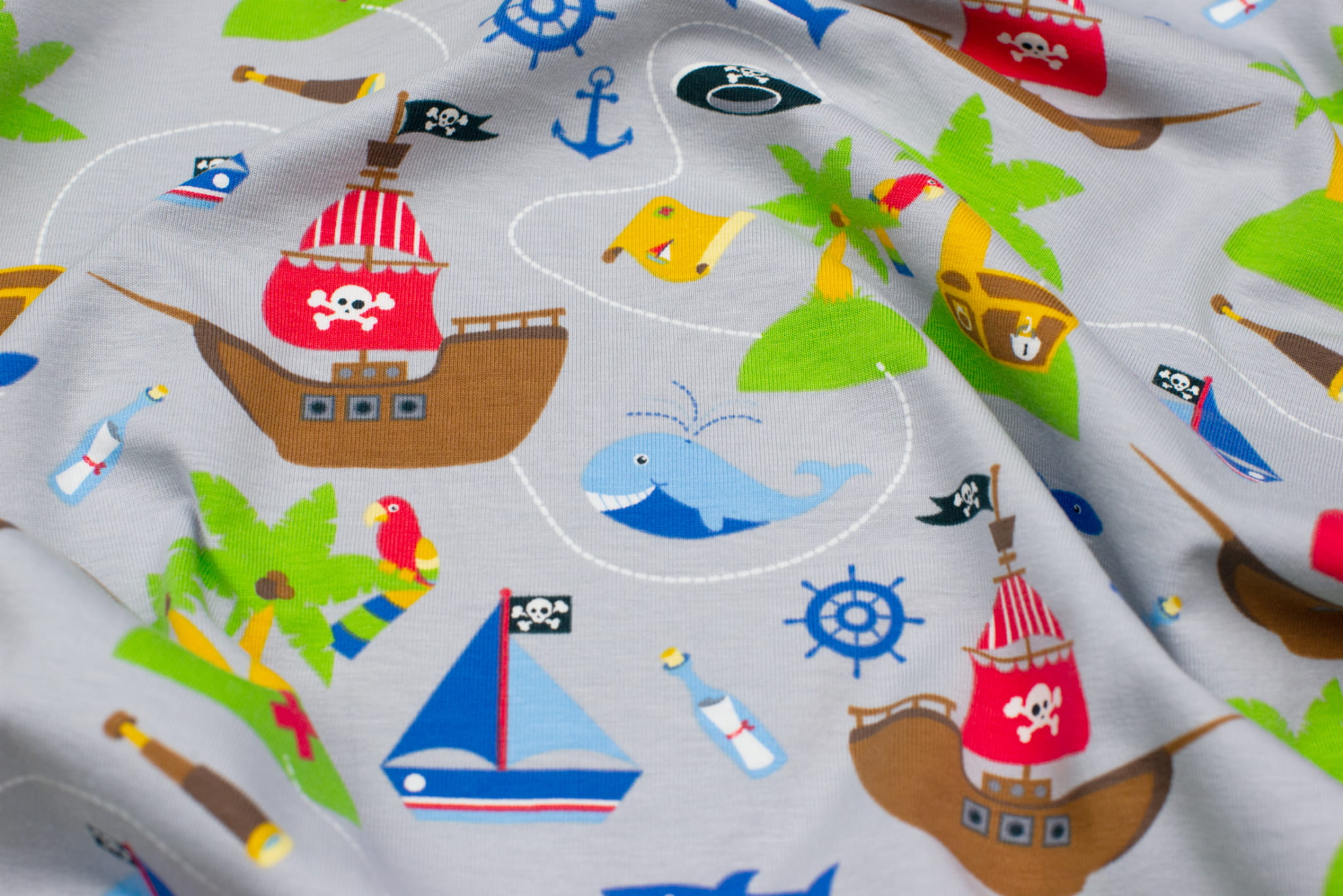 Jersey bawełniany wzór statki kolor jasnoszary