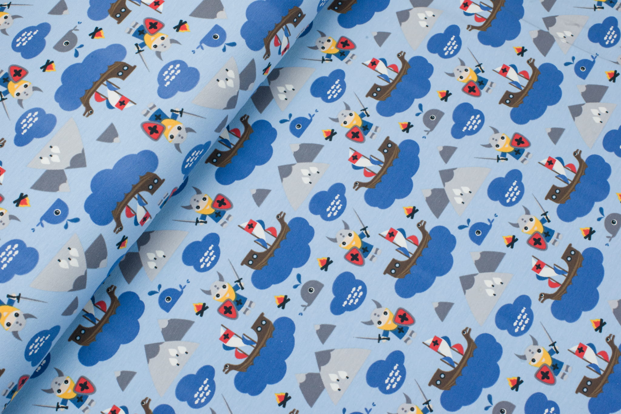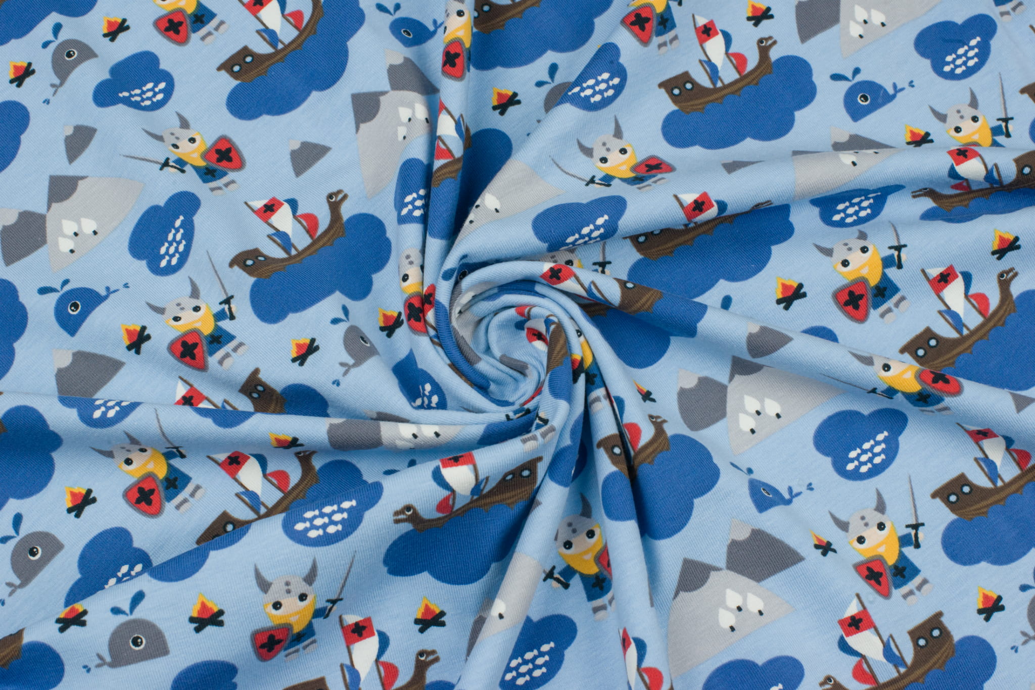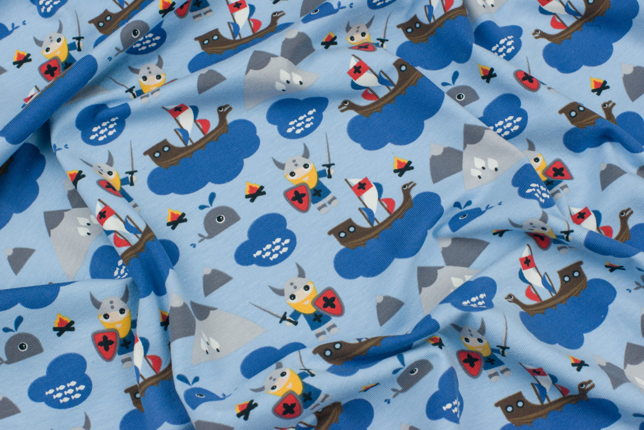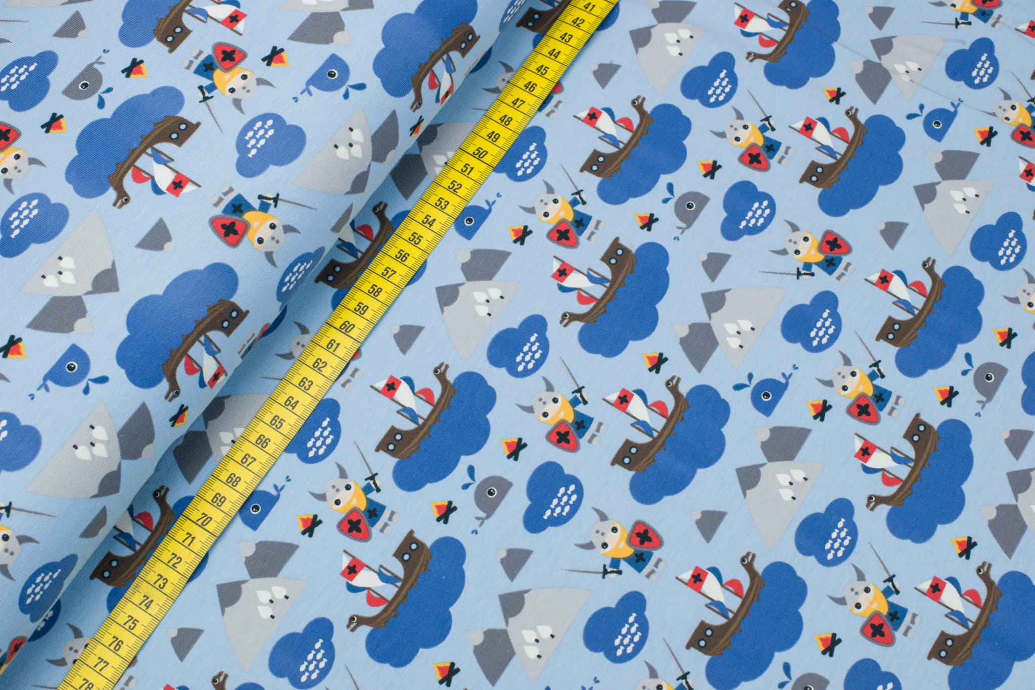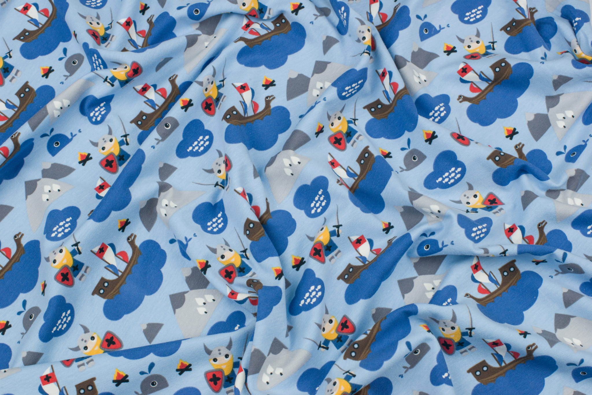 Jersey bawełniany wzór wikingowie błękitny