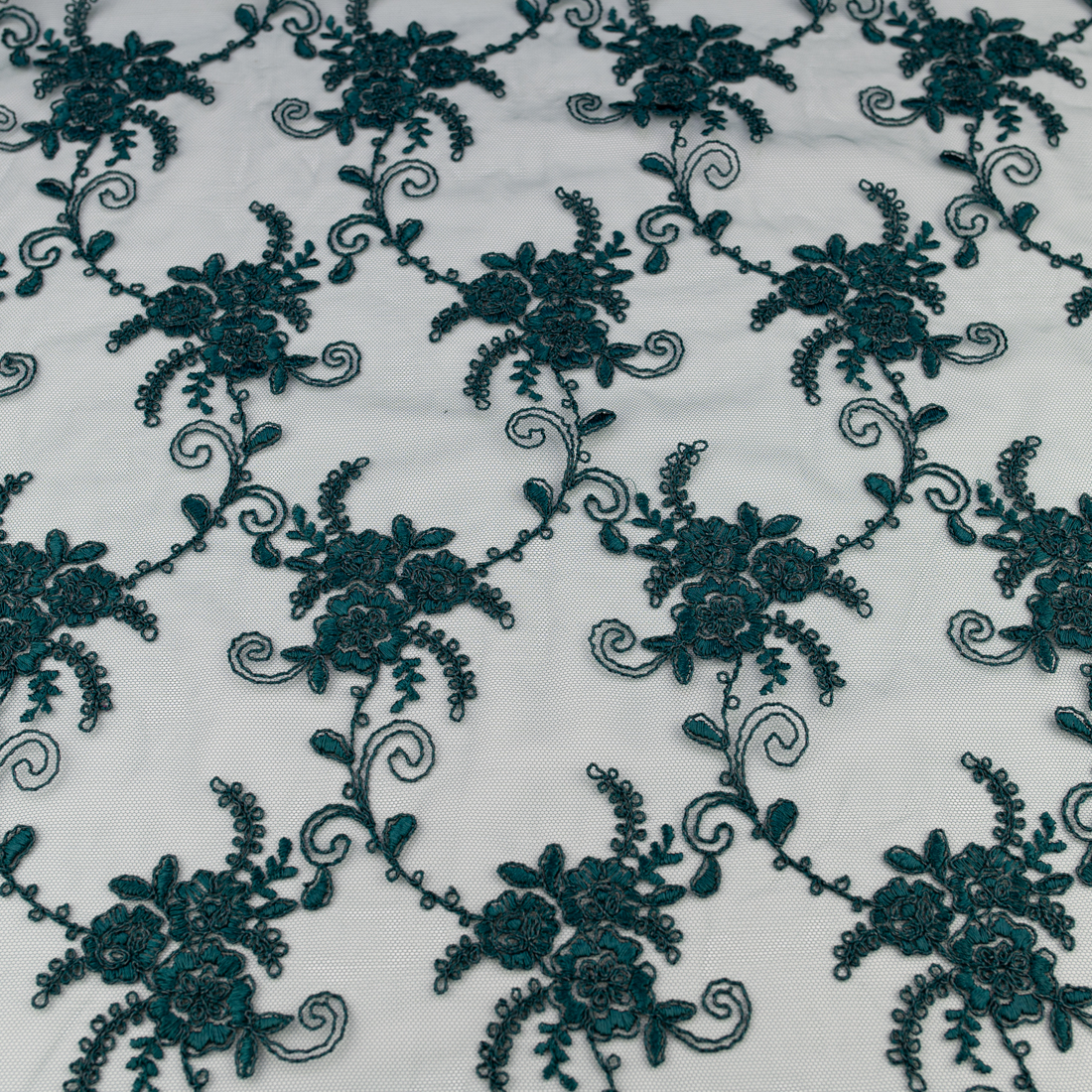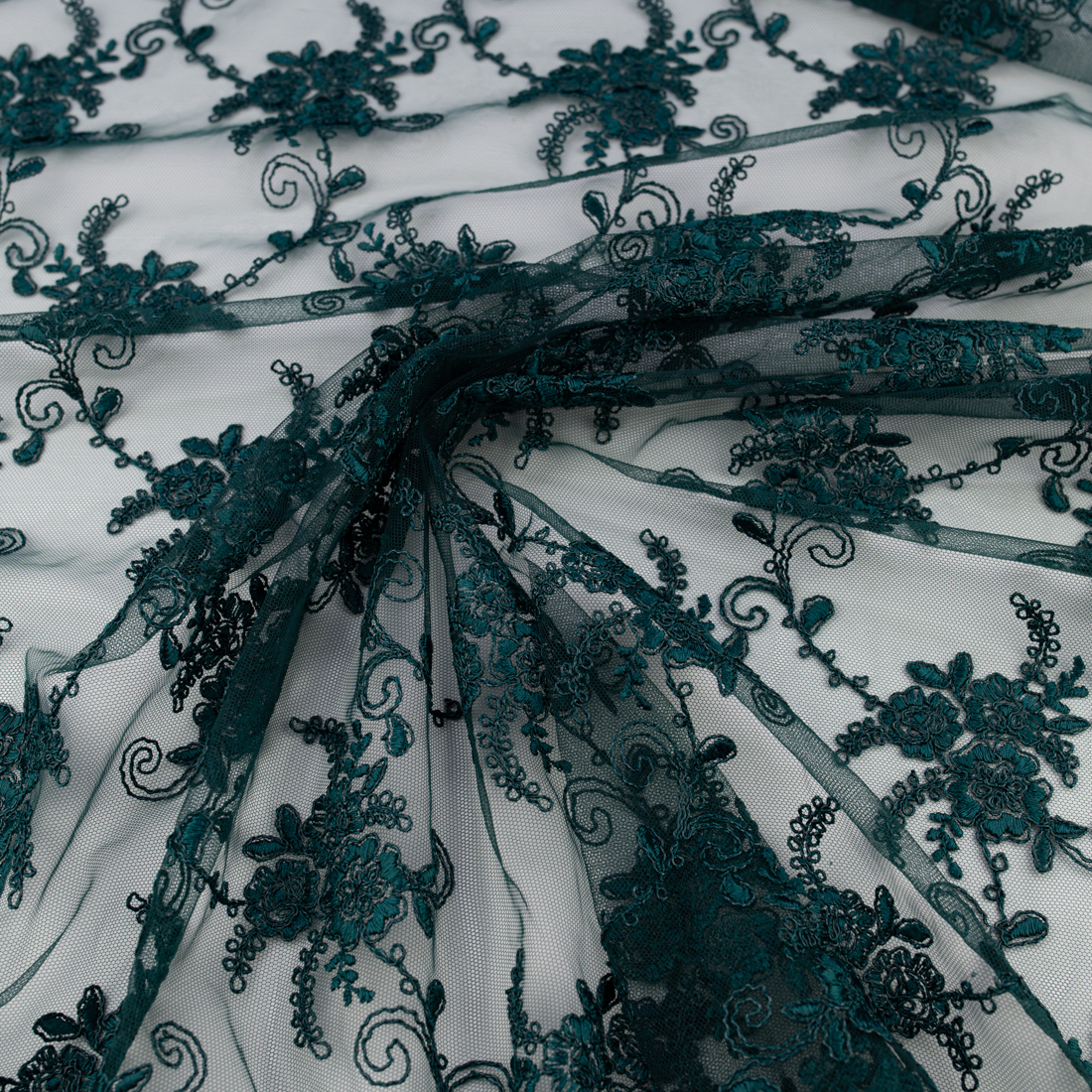 Koronka materiał w kwiaty kolor butelkowy zielony