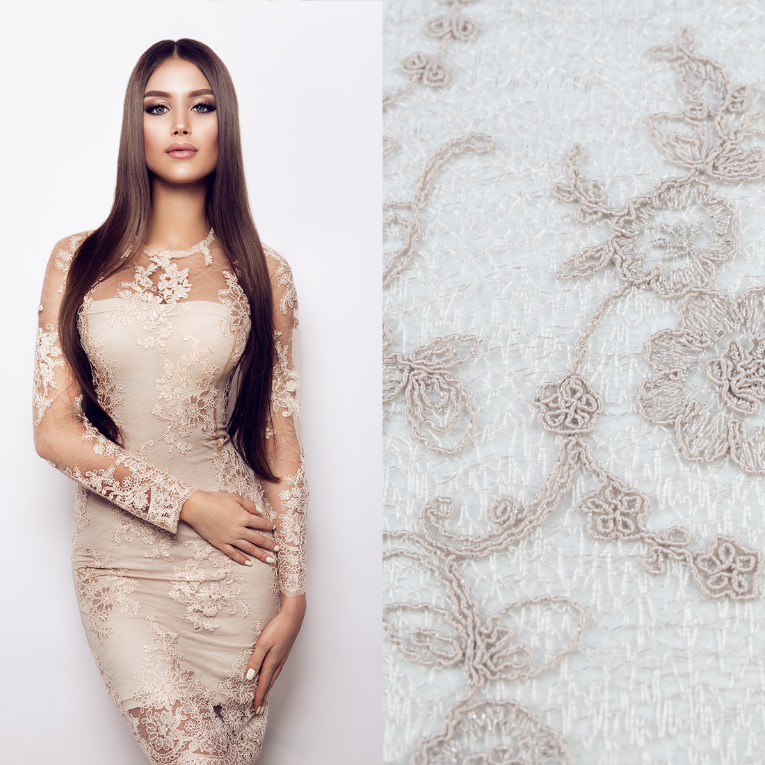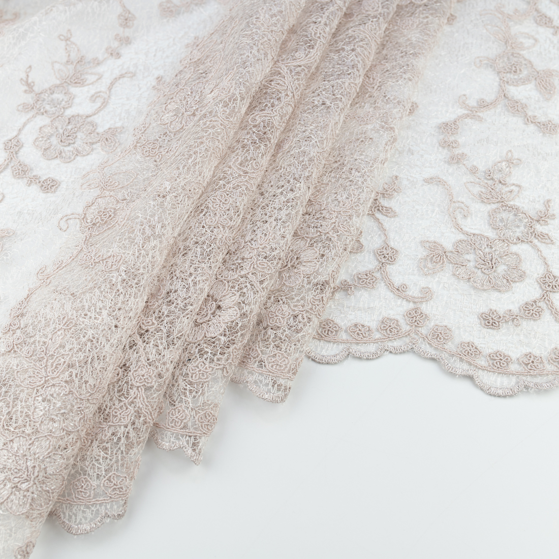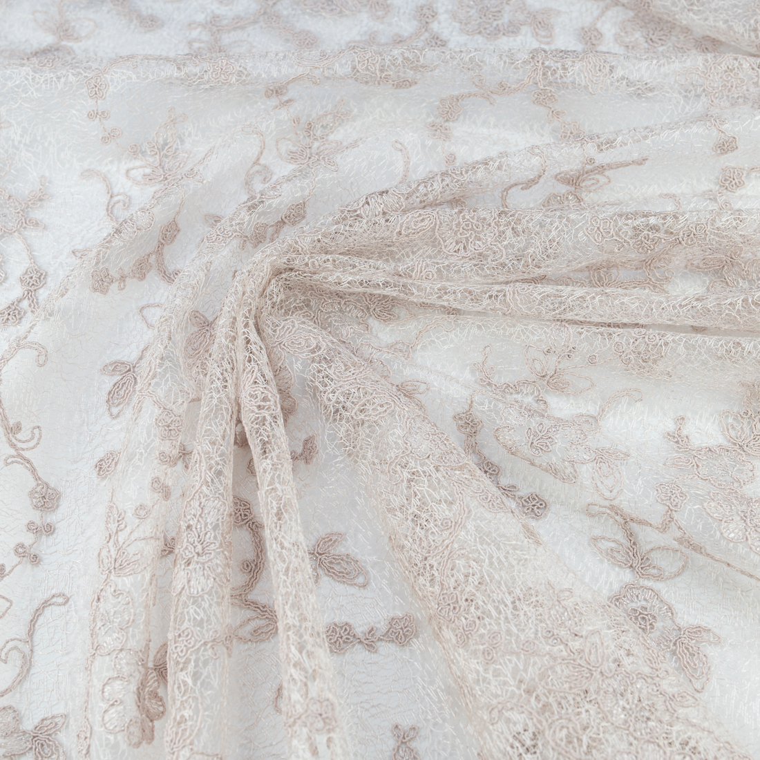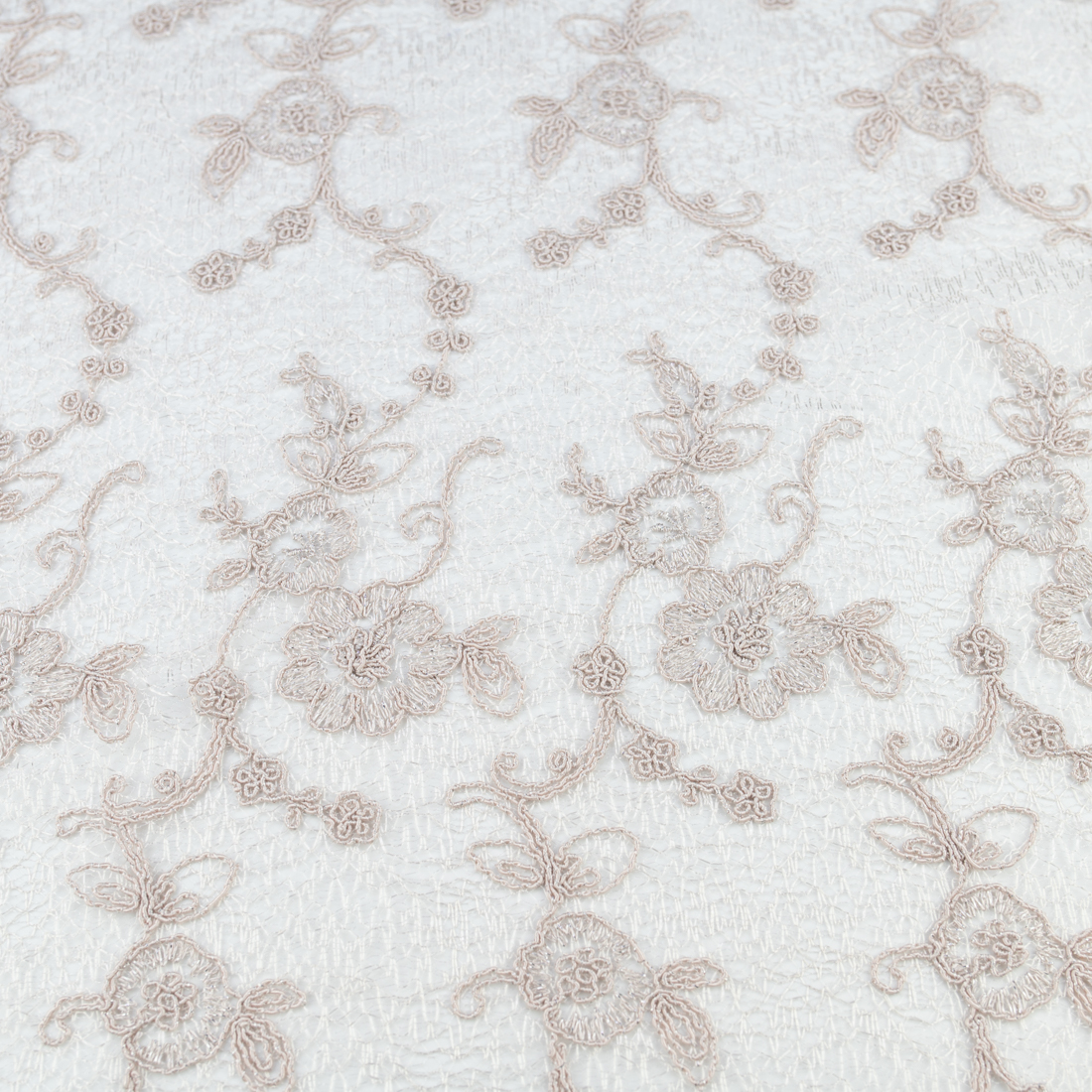 Koronka materiał w kwiaty kolor jasny beżowy