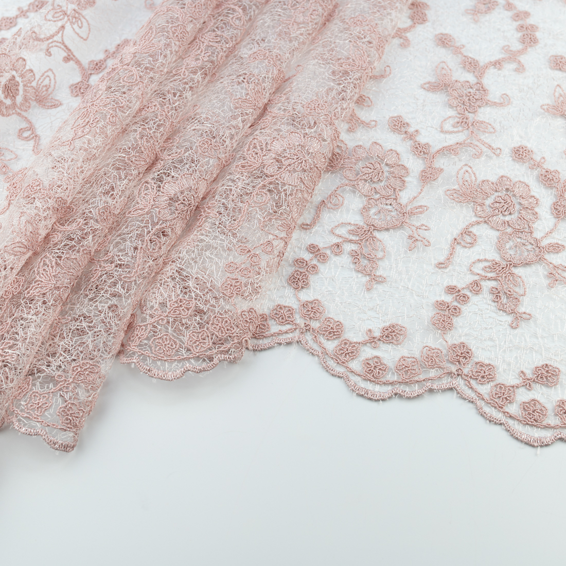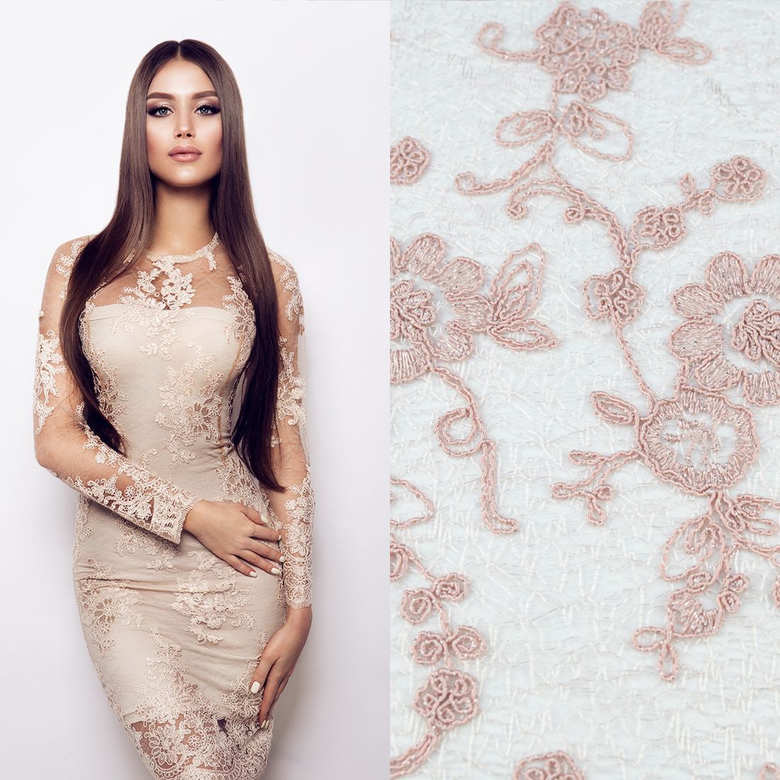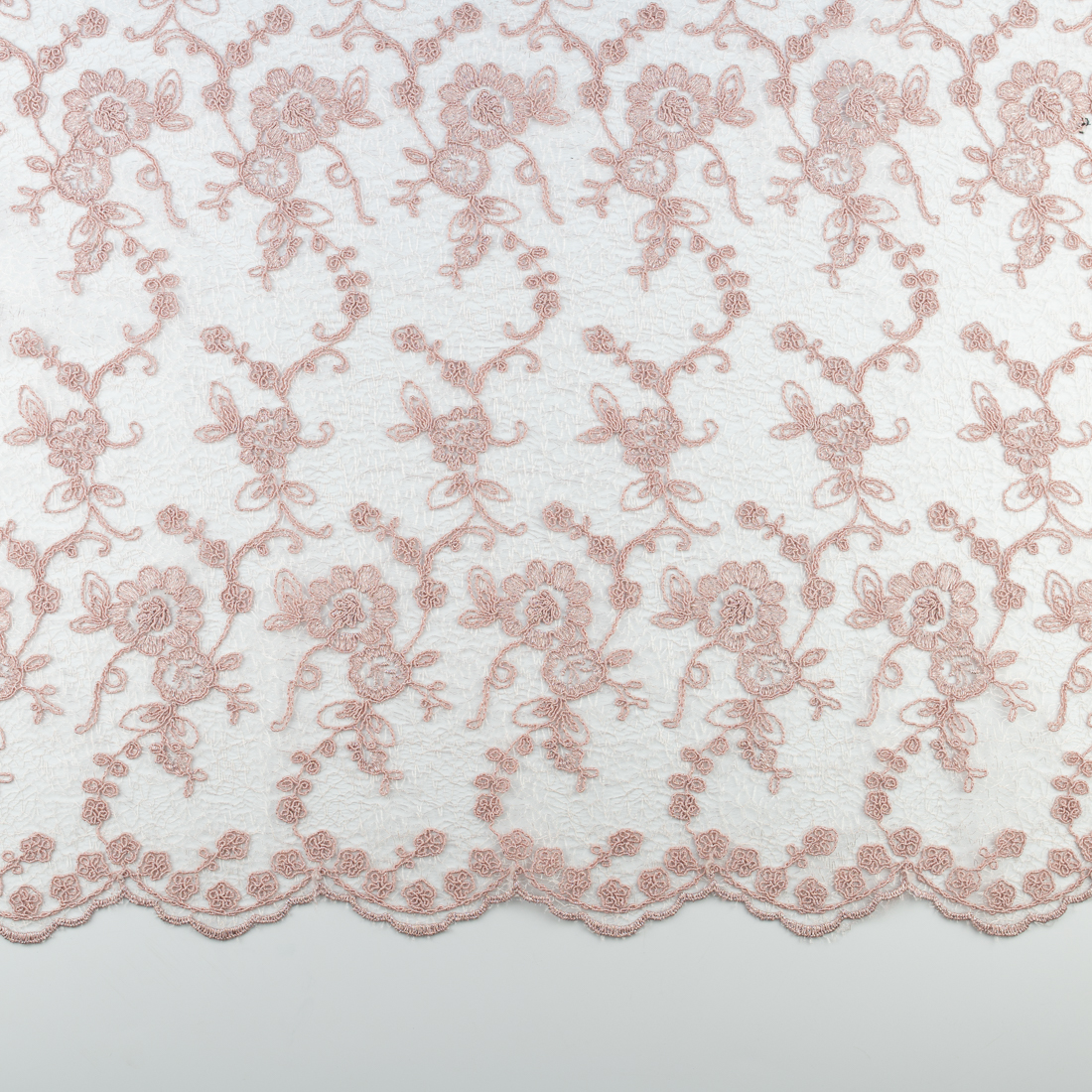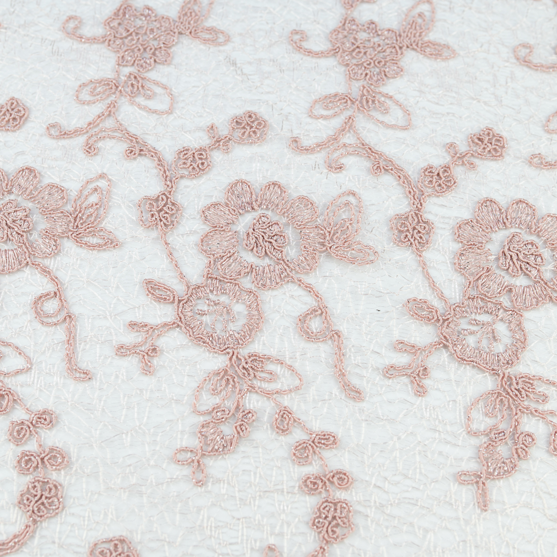 Koronka materiał w kwiaty kolor różowo beżowy