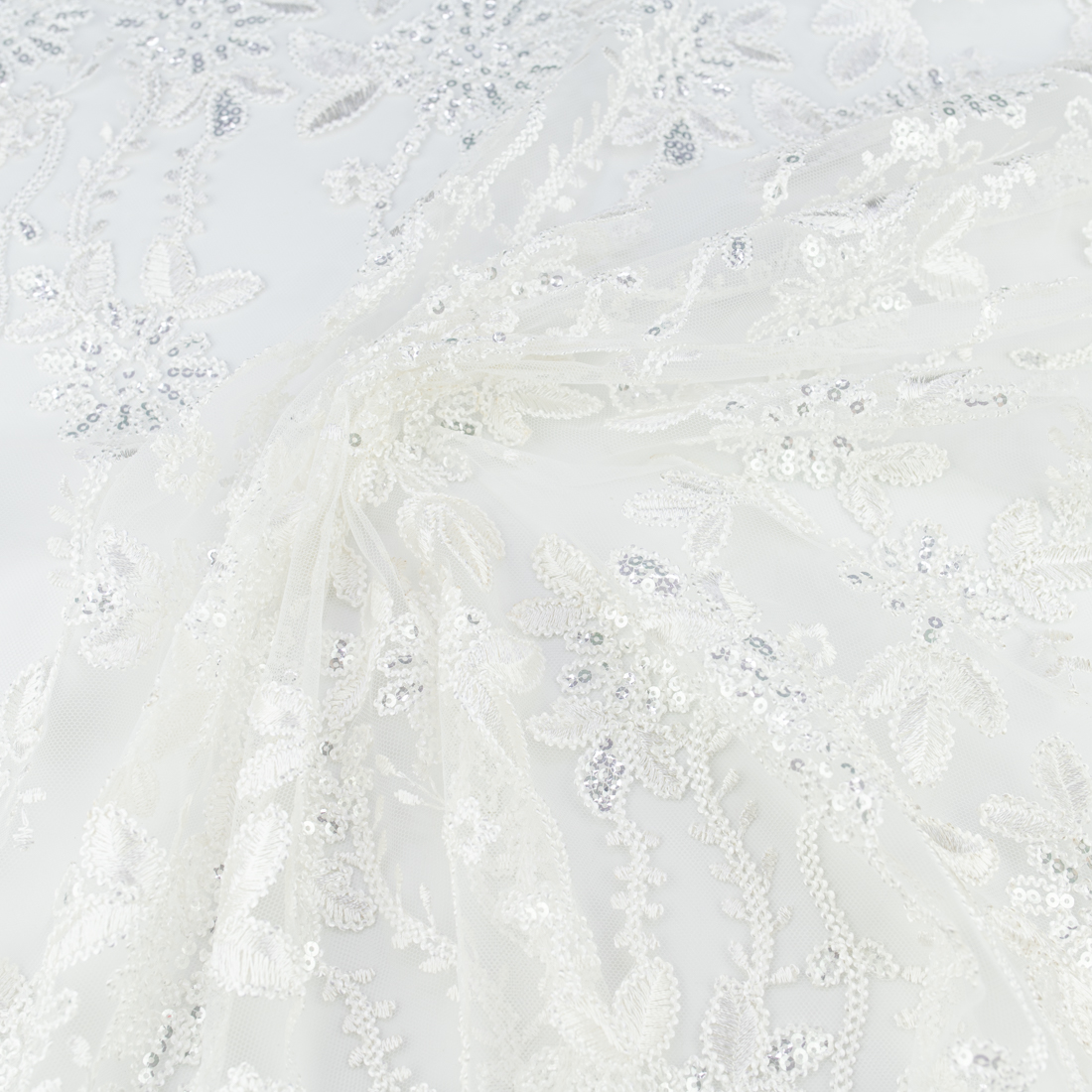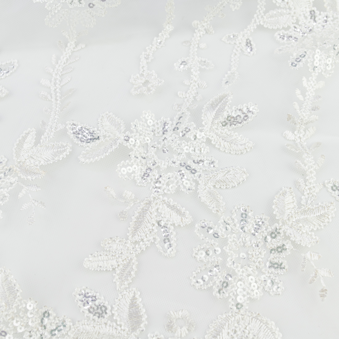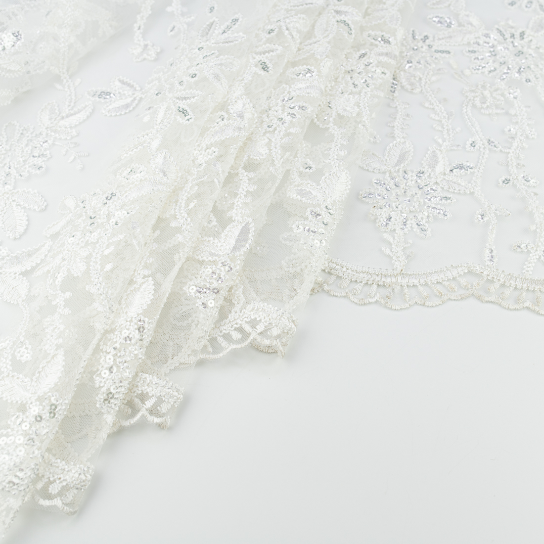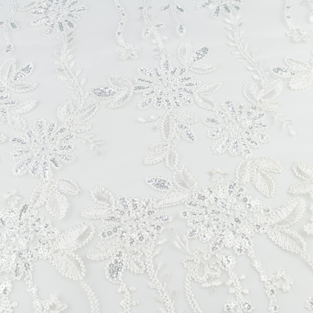 Koronka materiał w kwiaty kolor zgaszony biały