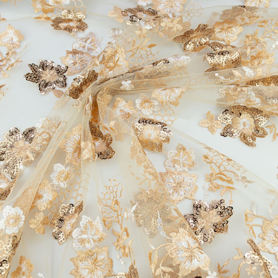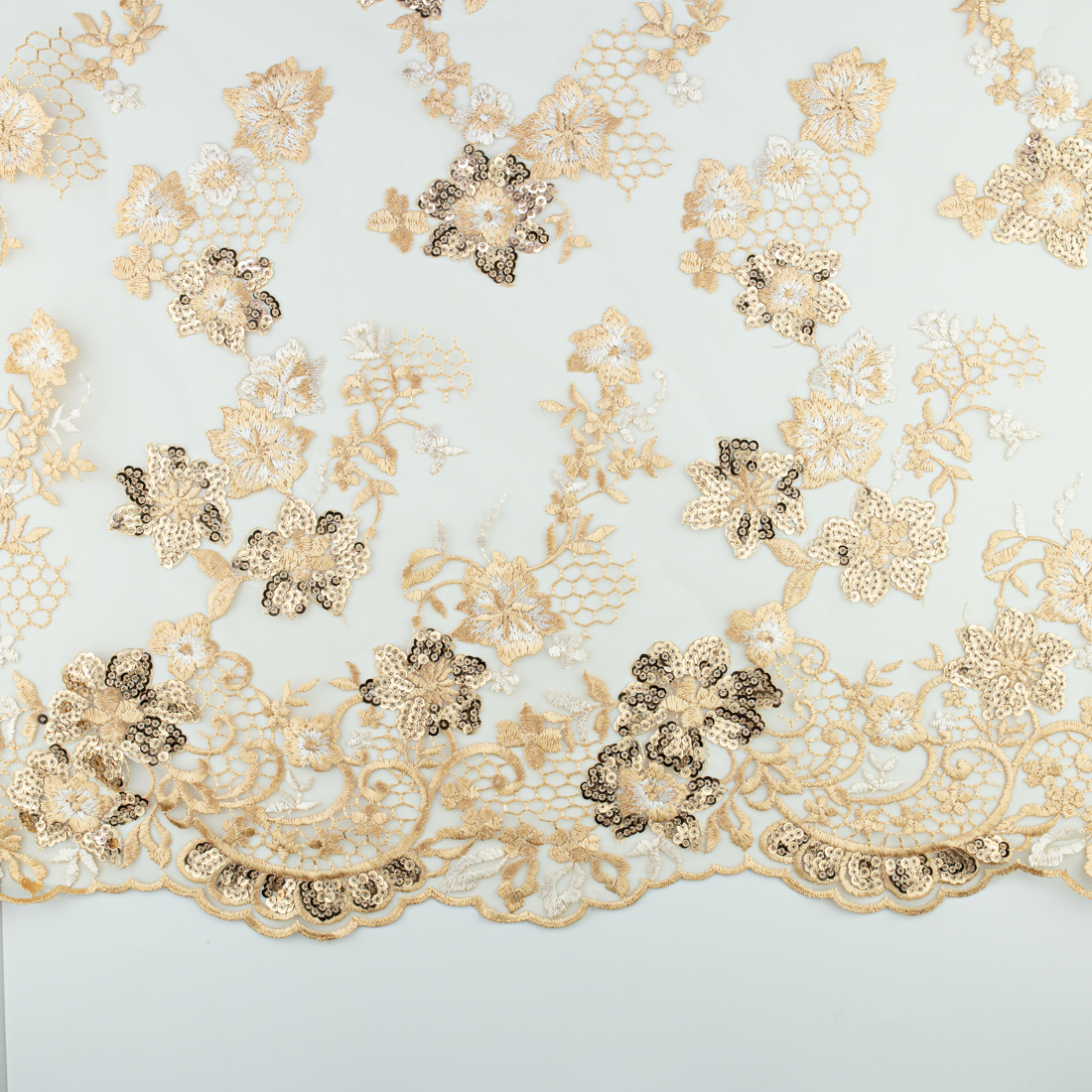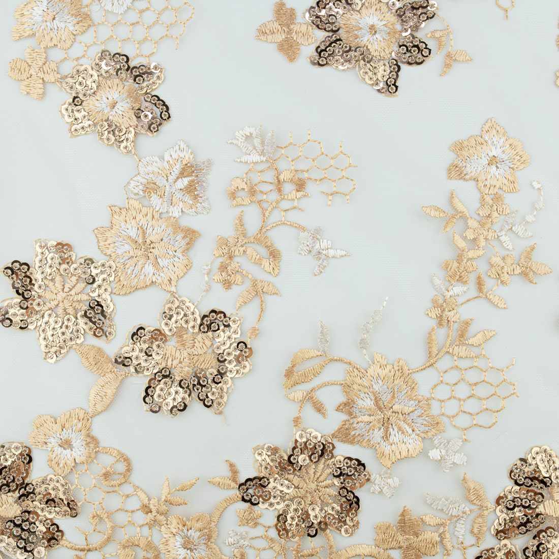 Koronka materiał w kwiaty kolor złoty
