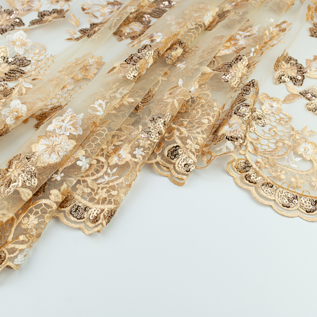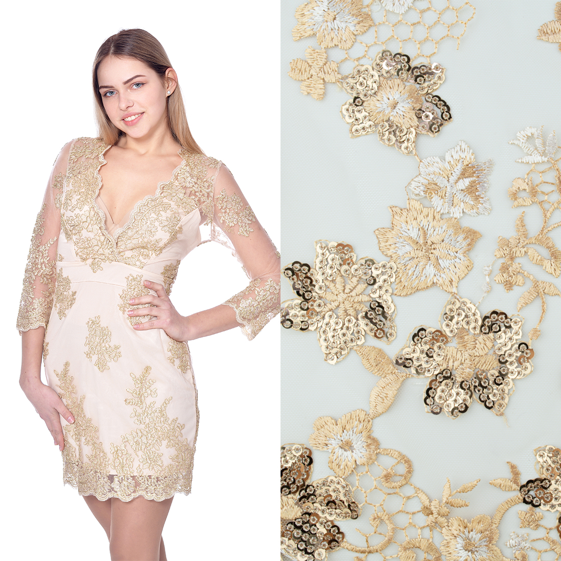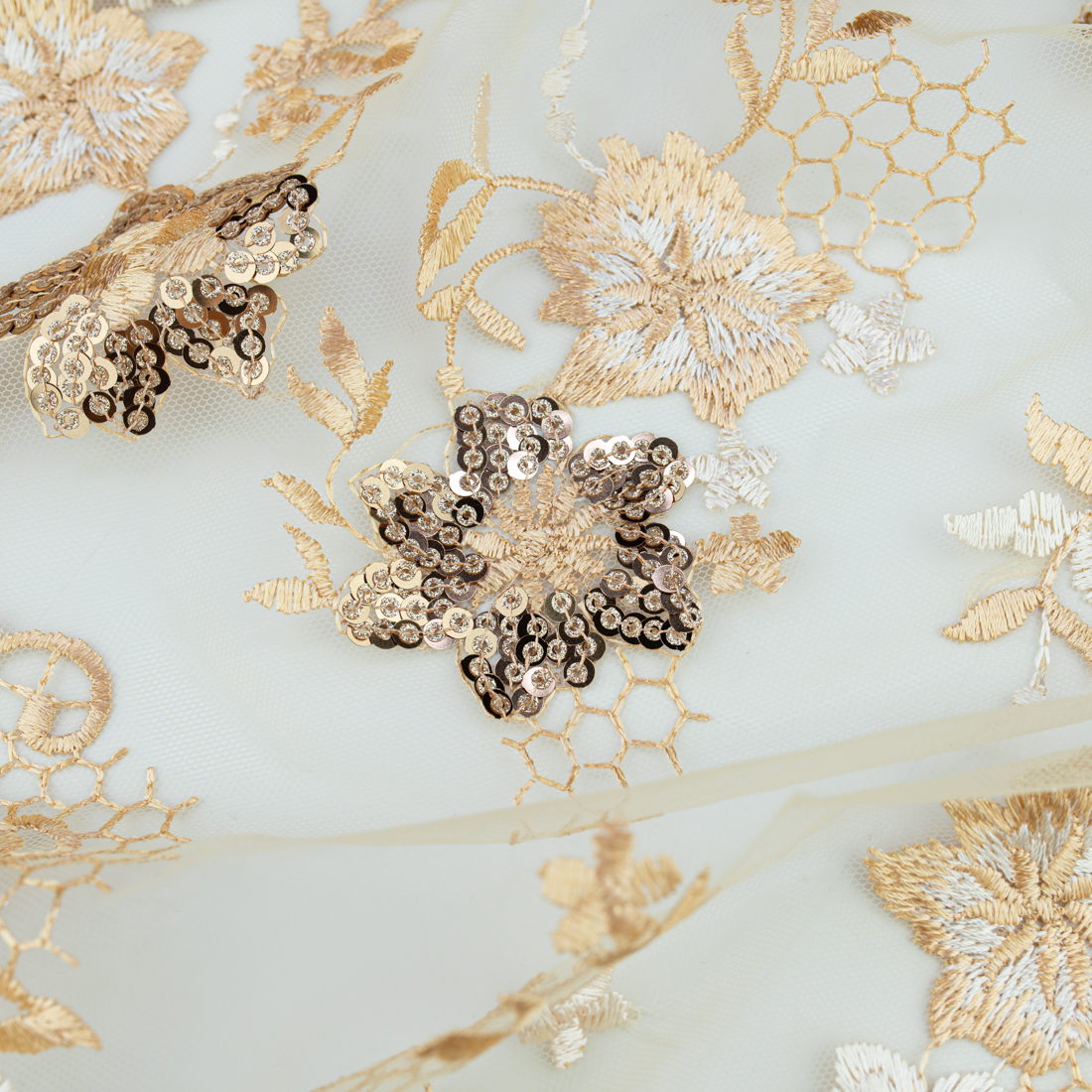 Koronka materiał w kwiaty kolor złoty