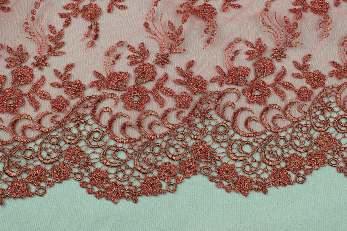 Koronka stabilna lejąca idealna do szycia wieczorowych kreacji, bluzek, sukienek, sukieneczek itp. Świetna na różnego rodzaju wstawki np. plecy sukienki, rękawy, zasłonki.