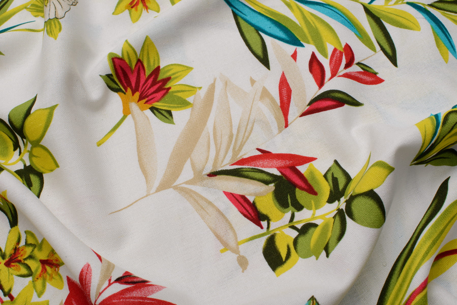 Len z wiskozą kwiatowy print / odcienie zieleni na kremowym tle