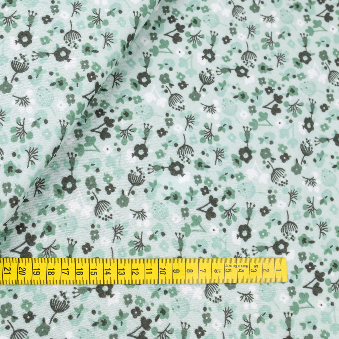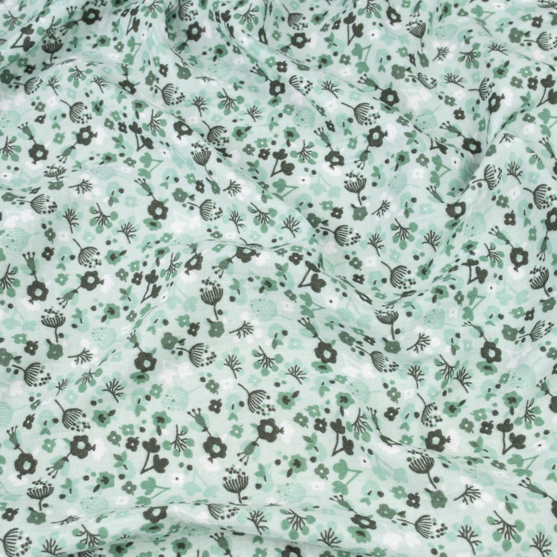 Muślin bawełniany wzór łączka kwiatowa kolor miętowy