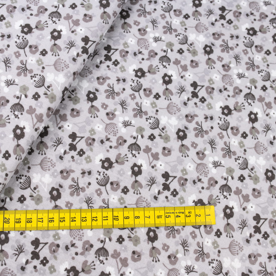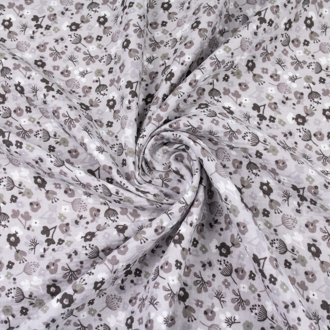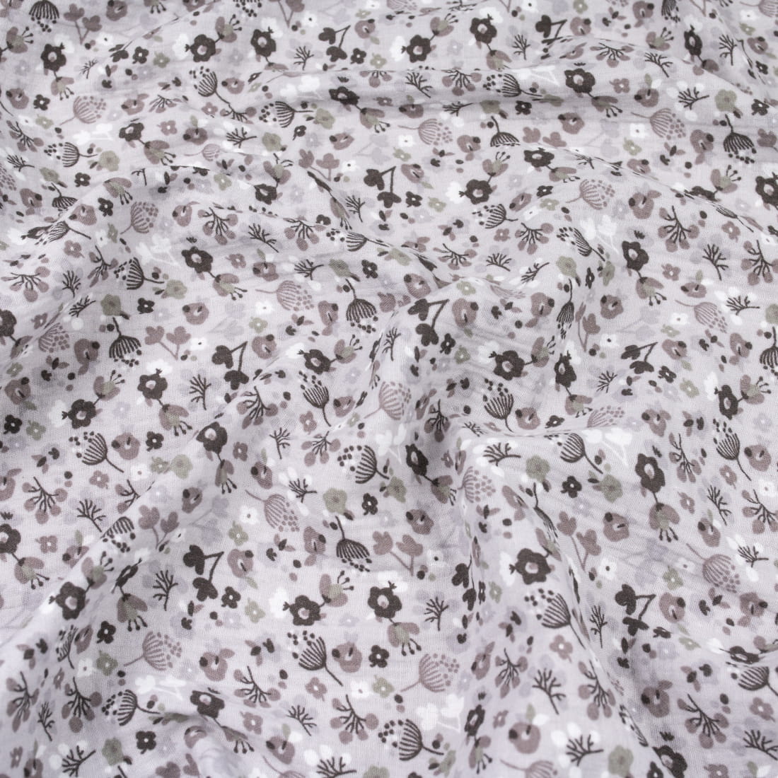 Muślin bawełniany wzór łączka kwiatowa kolor szary