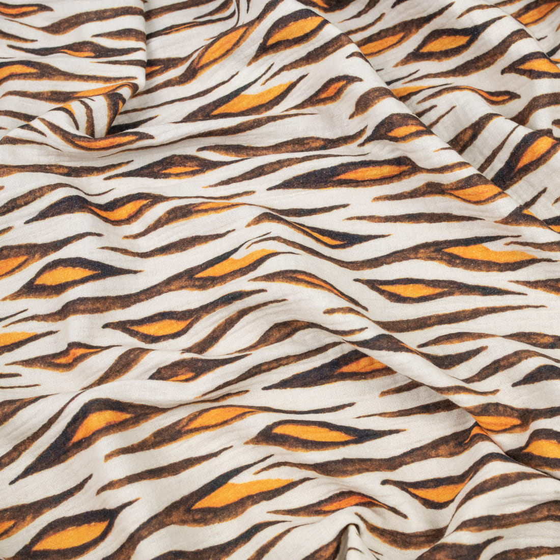 Muślin bawełniany wzór print zwierzęcy kolor kremowy