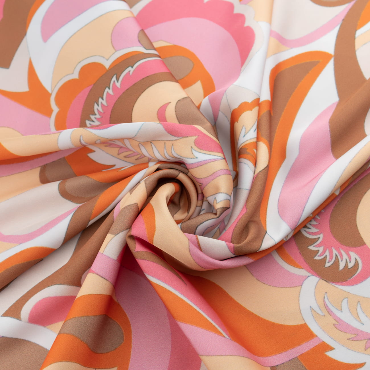 Miękka, lejąca tkanina doskonała na sukienkę lub bluzkę. Satyna jedwabna jest delikatna i miła w dotyku, a oryginalny, wiosenny wzór nada kreacji lekkości. Na zwiewne sukienki, bluzki, koszule, spódnice.
