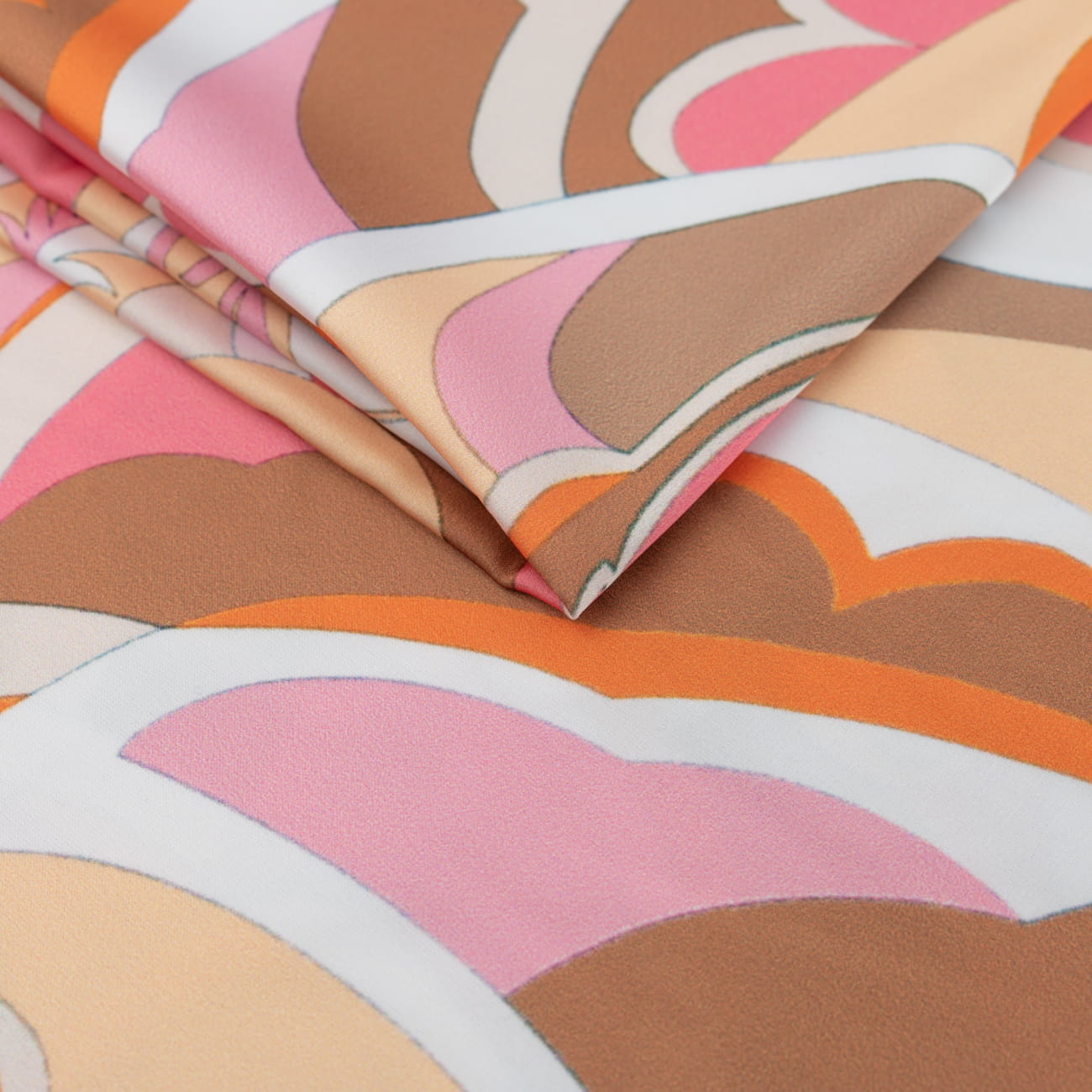 Szyfon jedwabny wzór liście odcienie różu i brązu