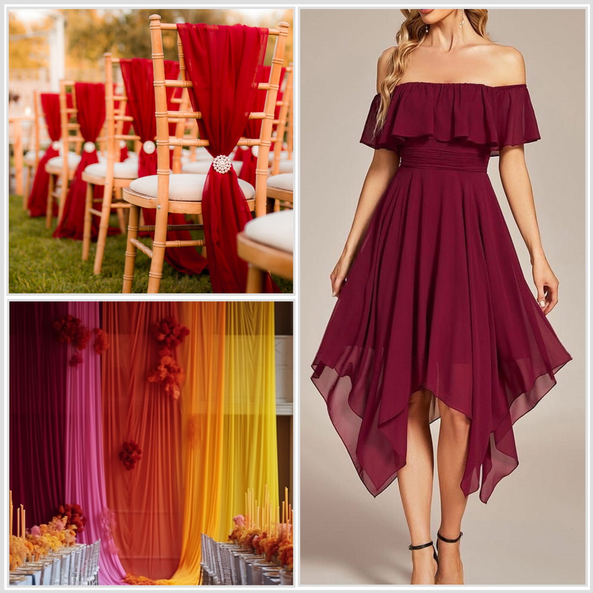 Zdjęcia w galerii mają charakter inspiracyjny. Przedstawiają przykładowe wizualizacje pokazujące możliwe zastosowanie tkaniny szyfon, m.in. w projektach odzieżowych i dekoracyjnych.