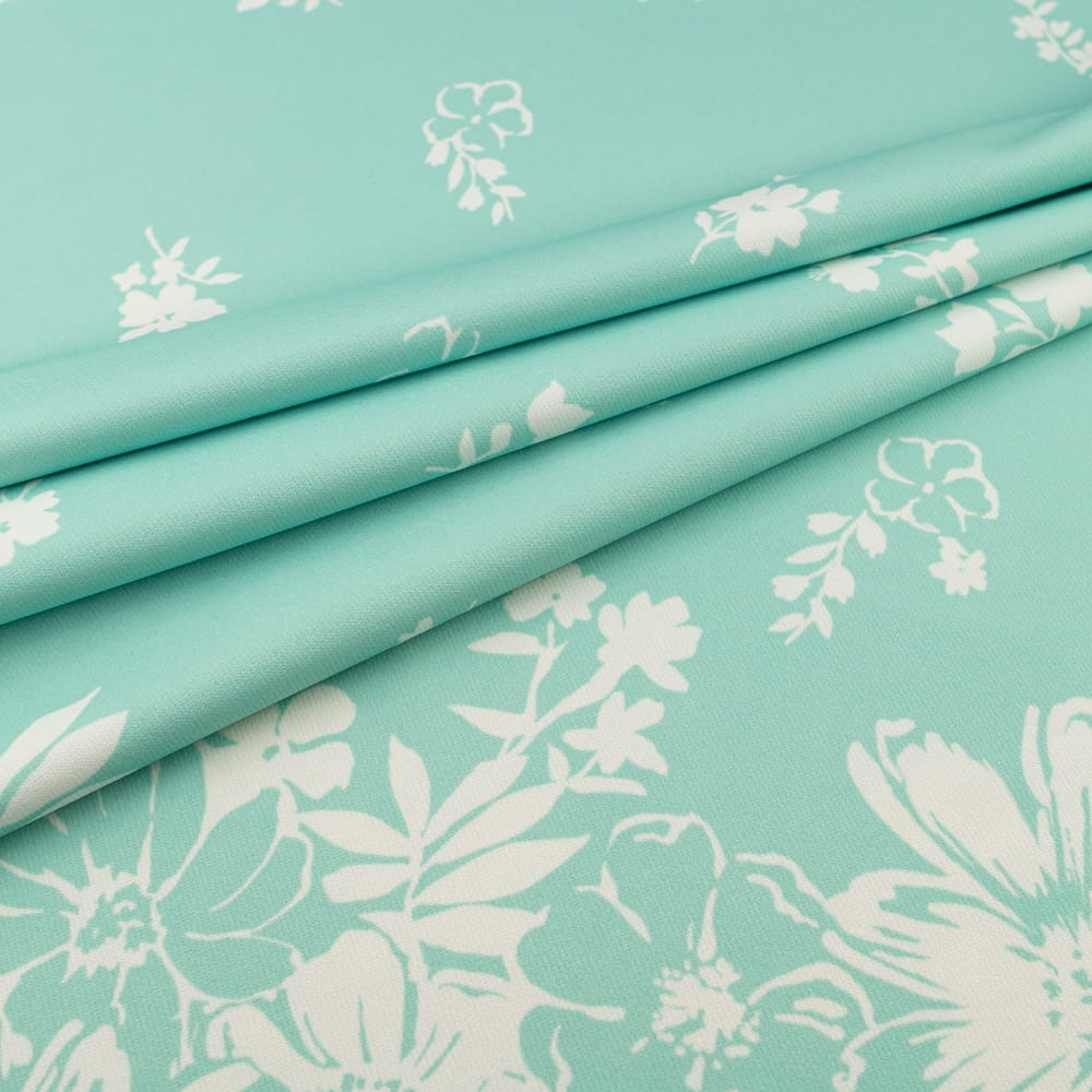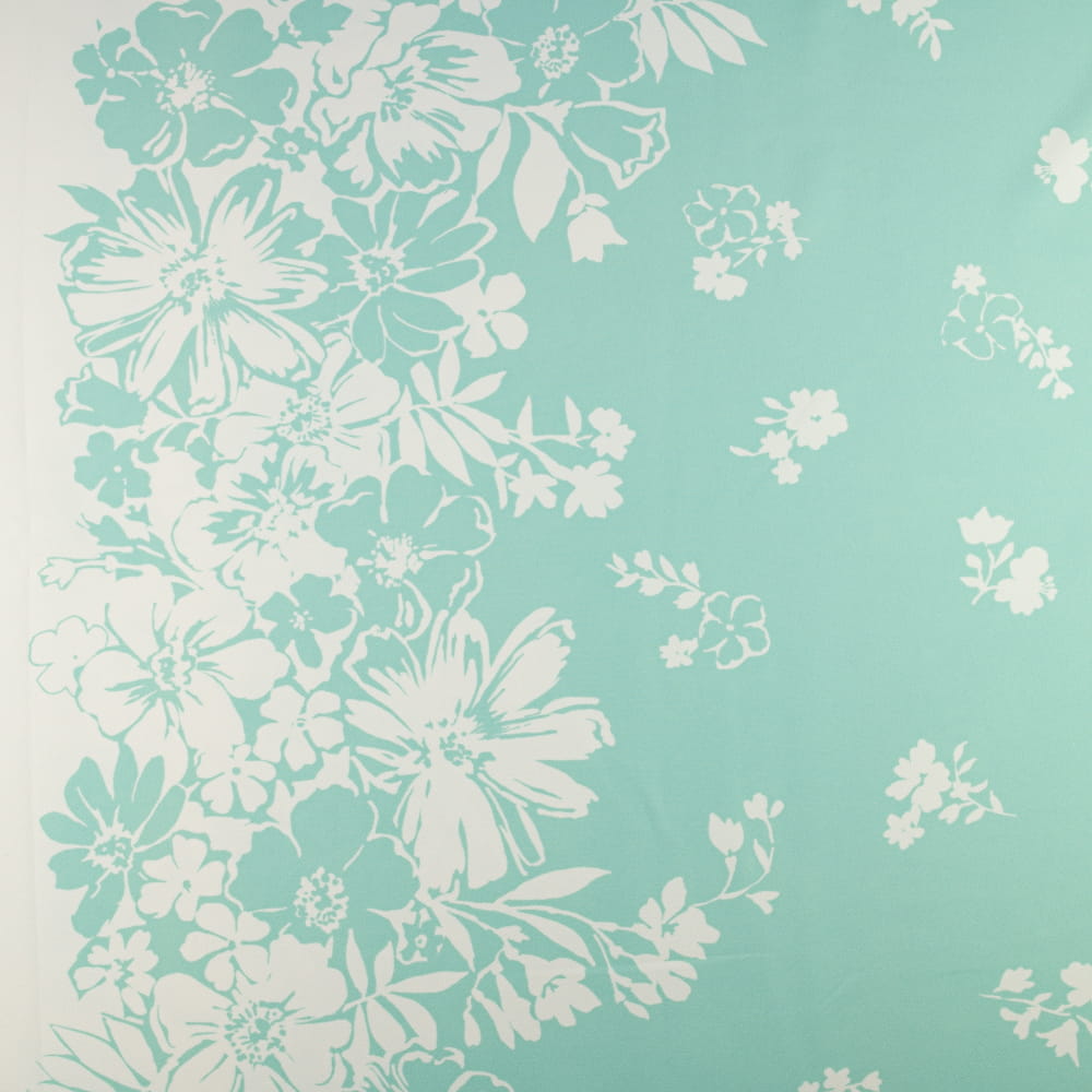 Tkanina Barbie wzór kwiaty kolor seledynowy KUPON 110 cm