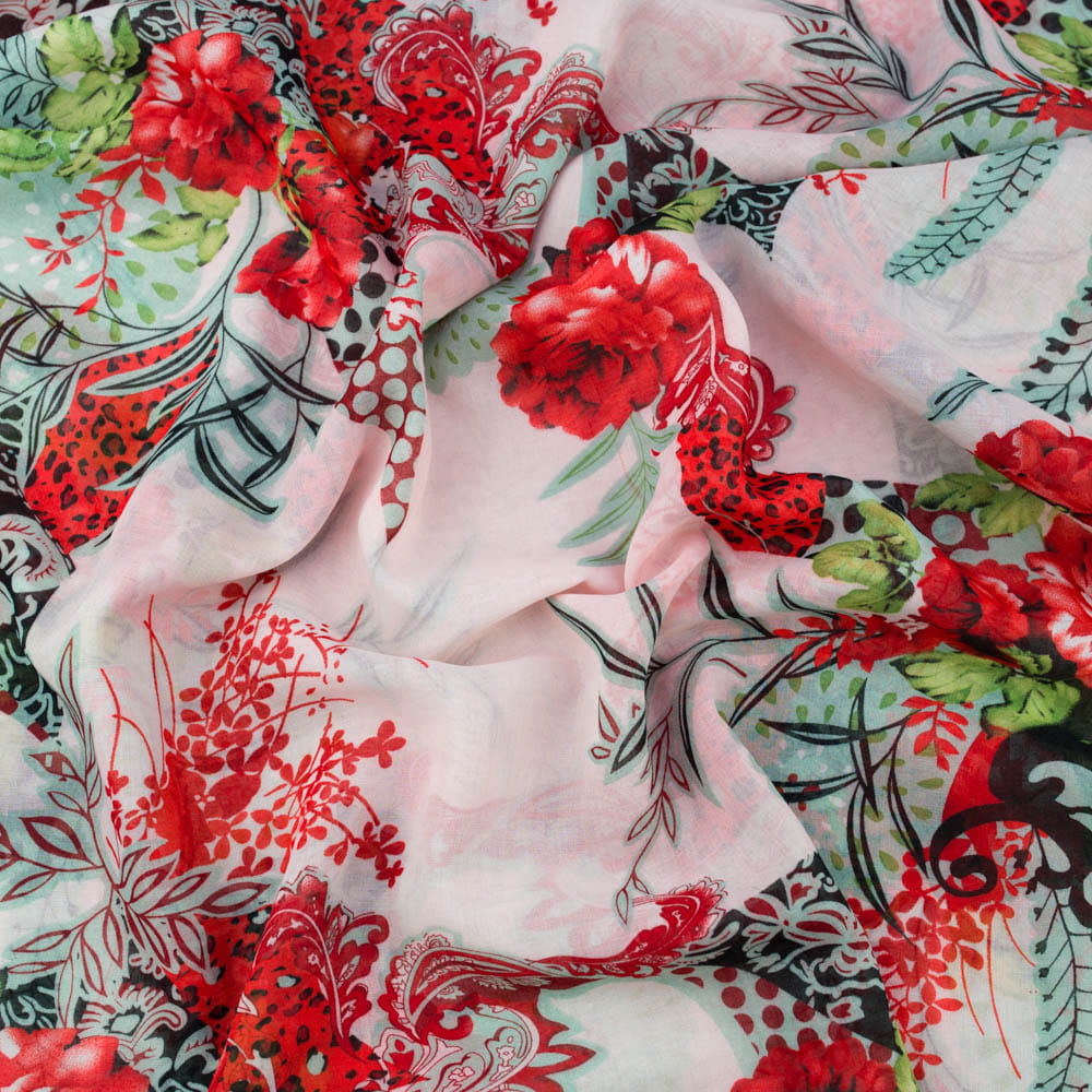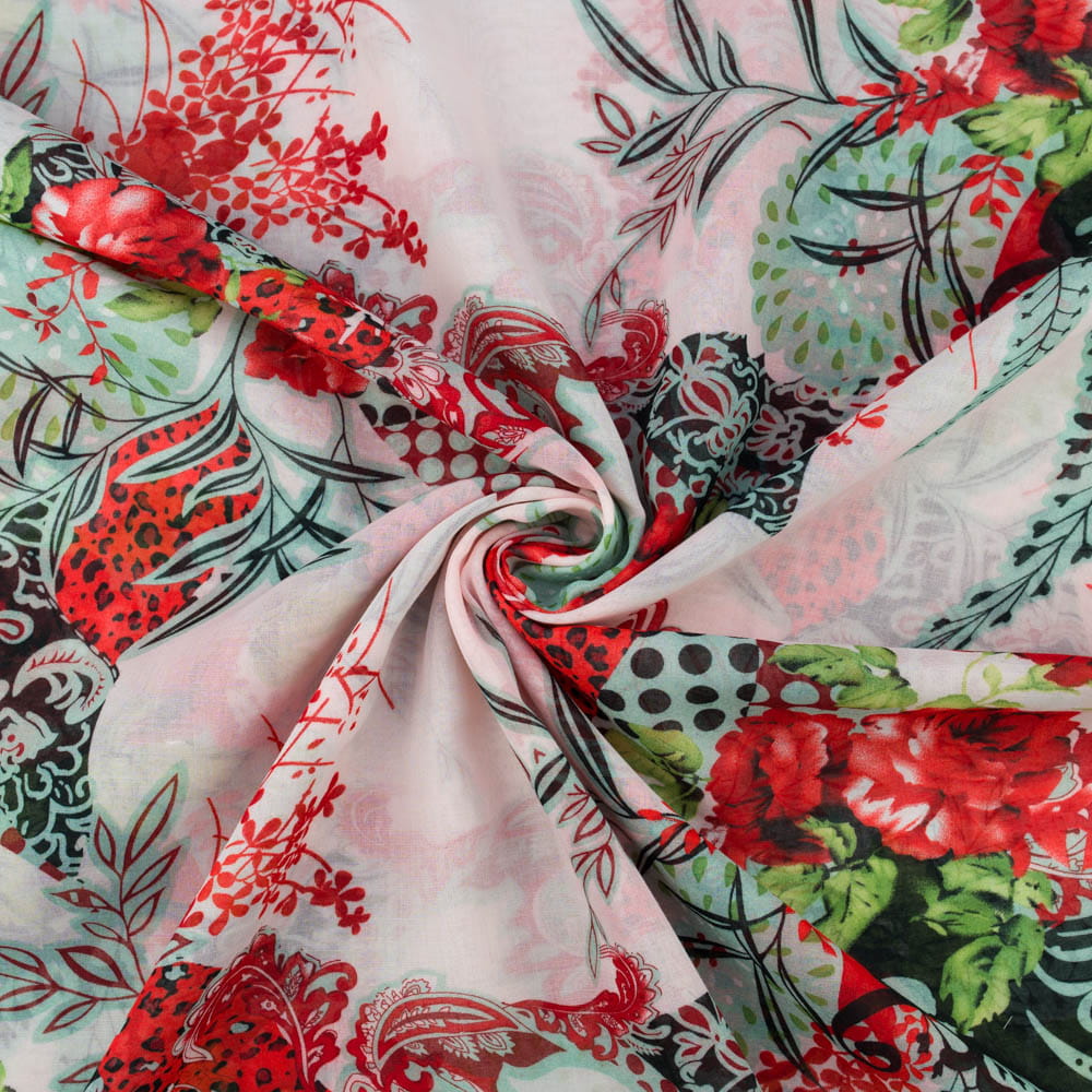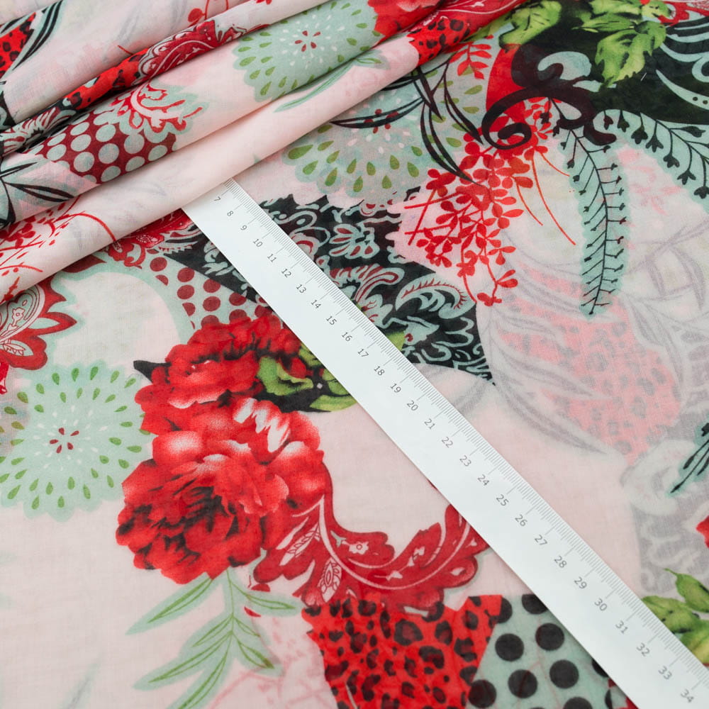 Tkanina Batyst kwiaty jasny różowy