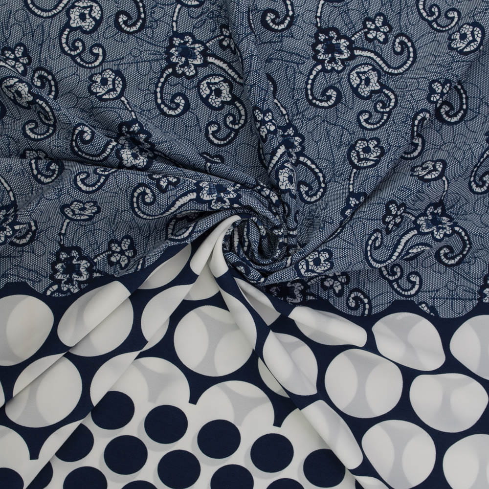 Tkanina Krepa border dwustronny granatowy