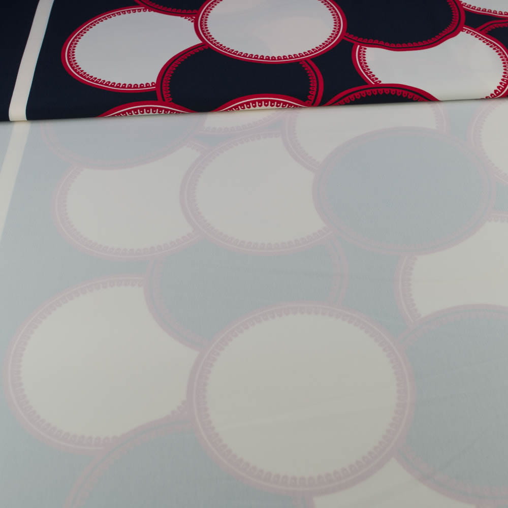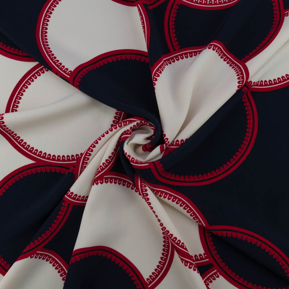 Tkanina Krepa geometryczny border dwustronny czerwony