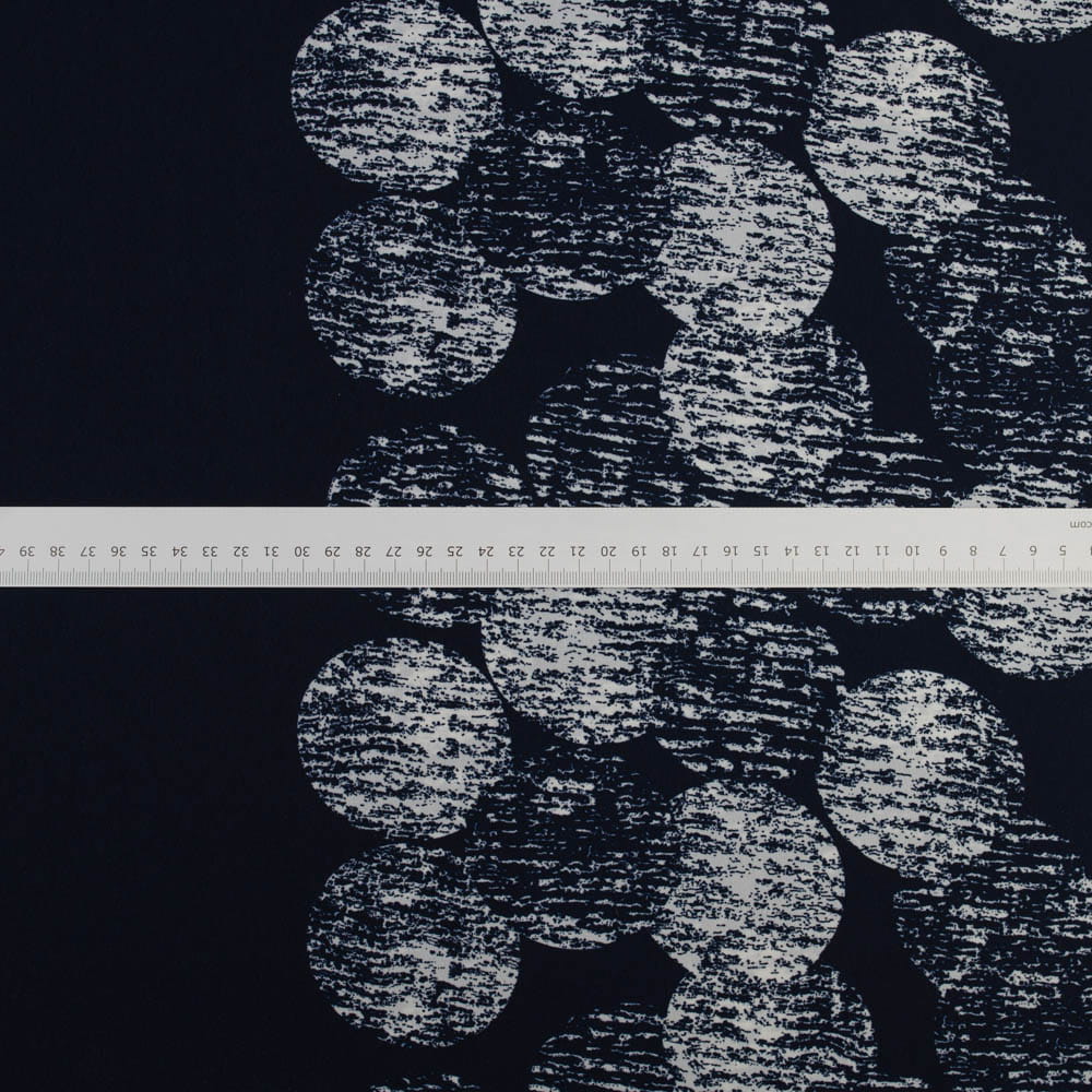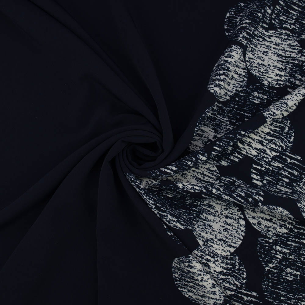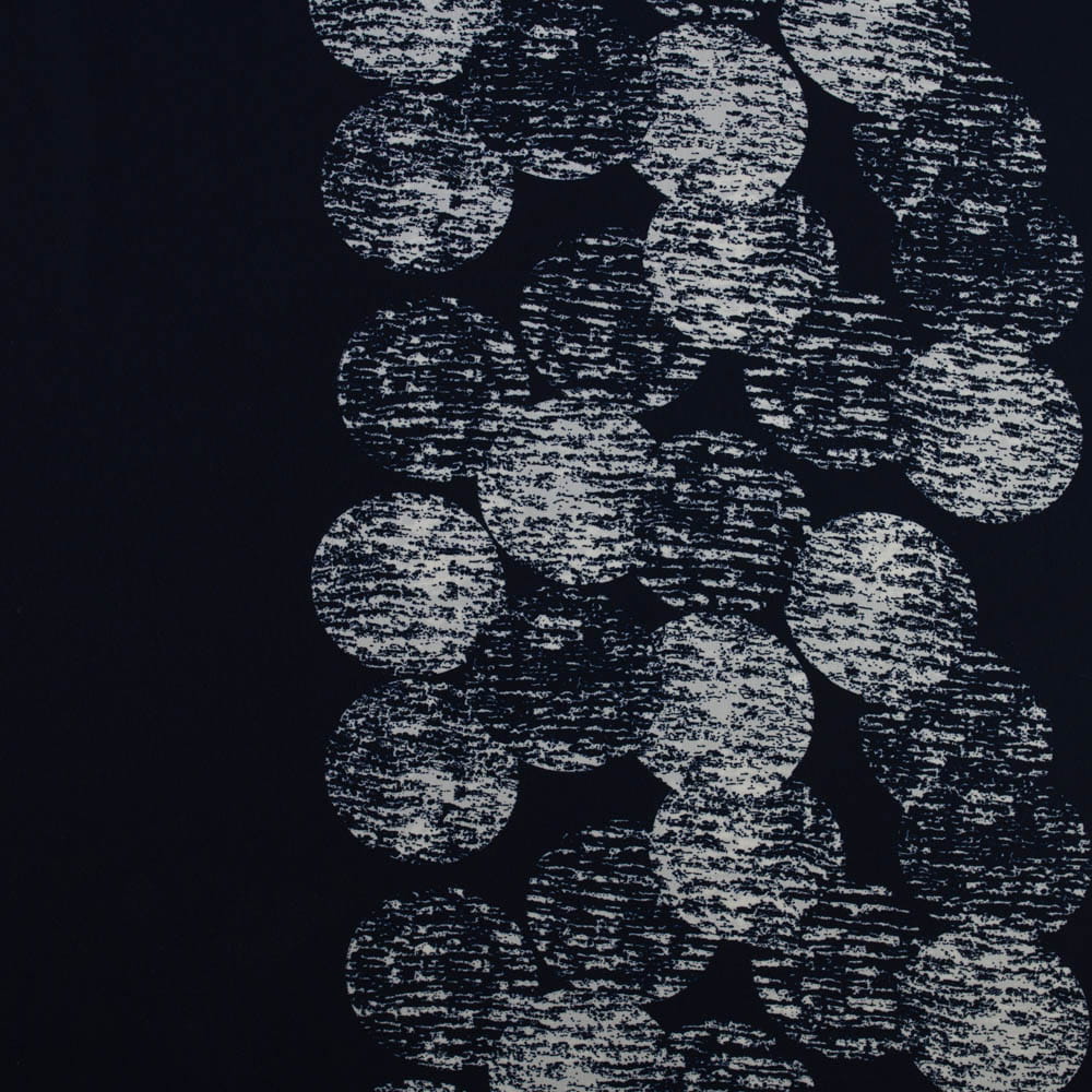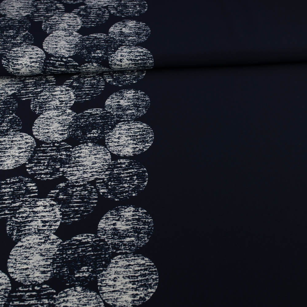 Tkanina Krepa grochy border dwustronny granatowy