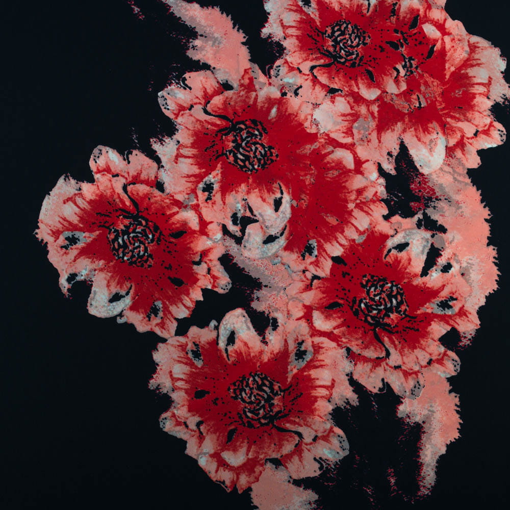 Tkanina Krepa kwiaty border dwustronny czerwony