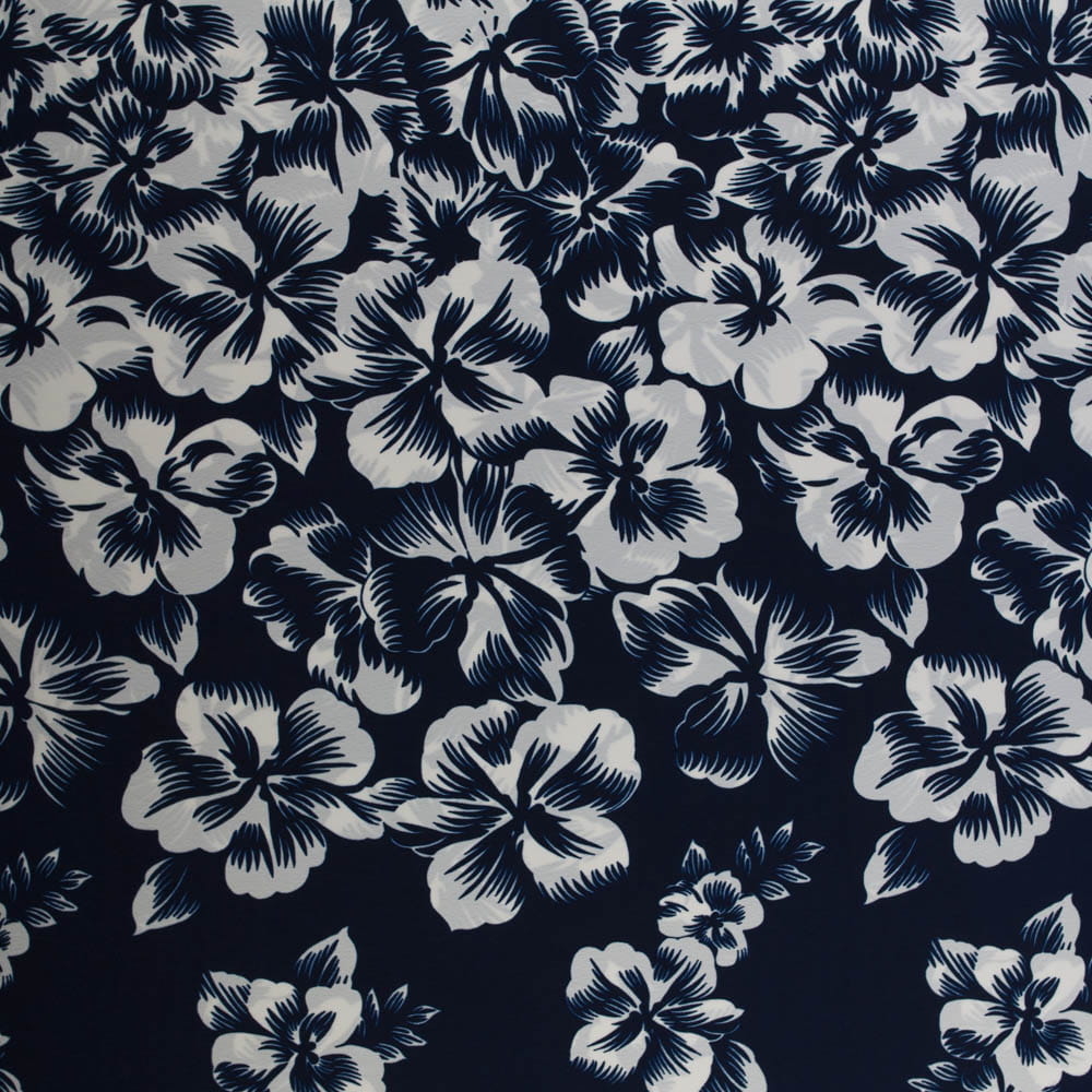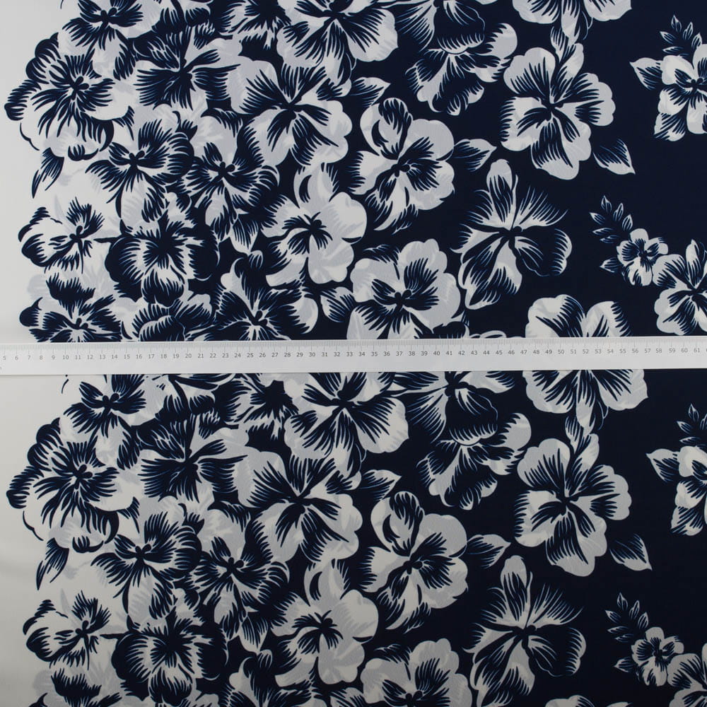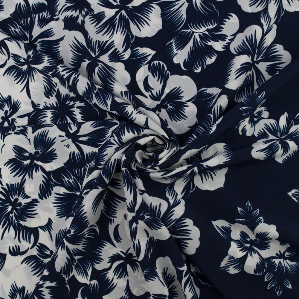 Tkanina Krepa kwiaty border dwustronny granatowy