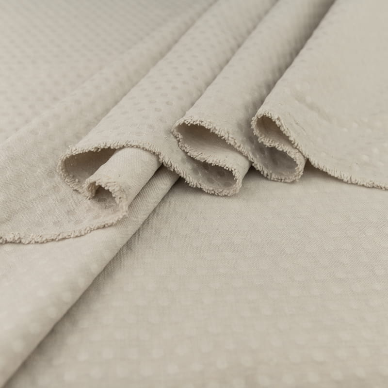 Tkanina Panama wzór grochy kolor szary beż