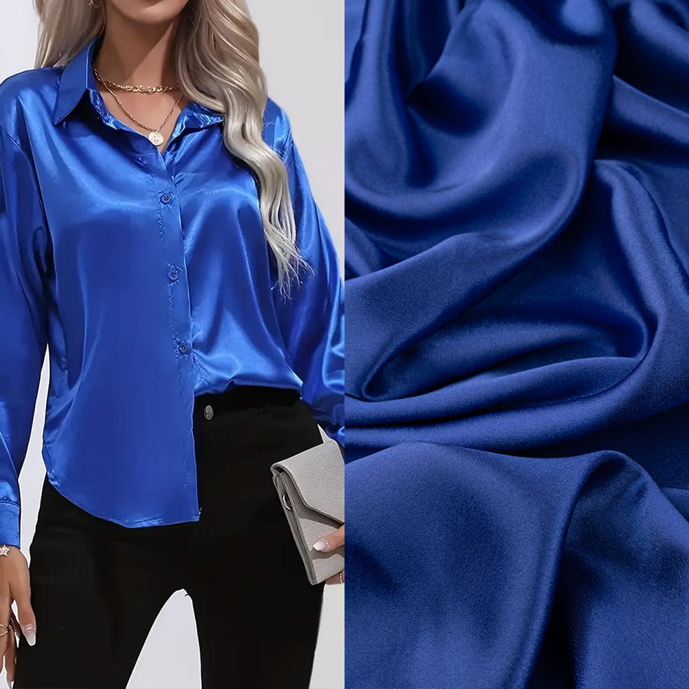 Cechy charakterystyczne tkaniny satyna krepa w kolorze chabrowym: