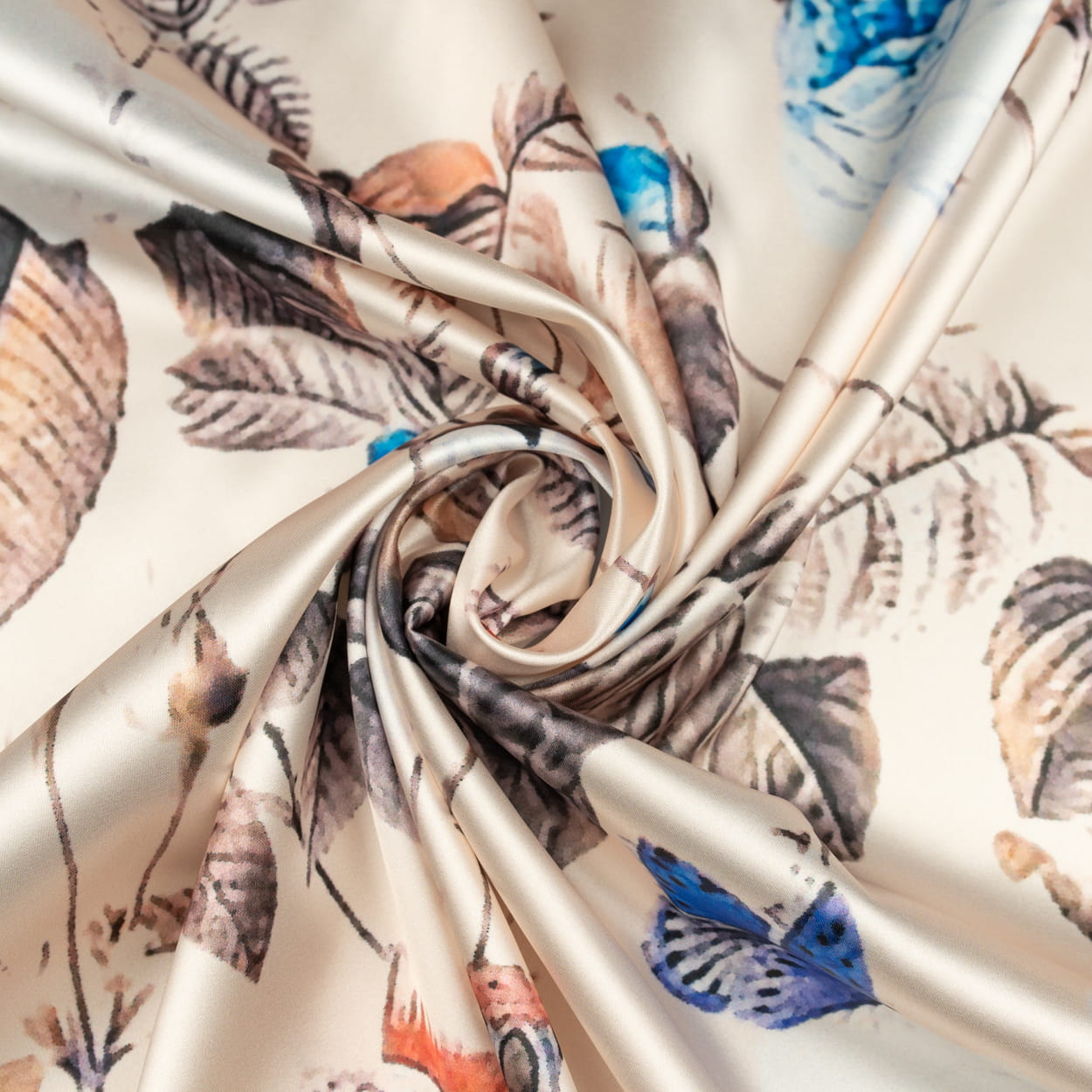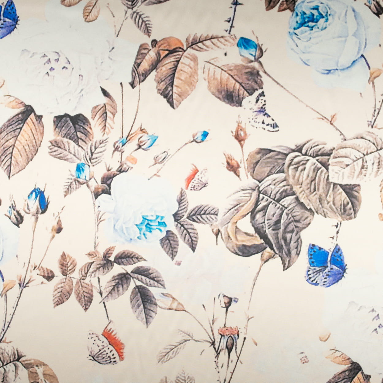 Tkanina Satyna lycra beżowy w róże motyle