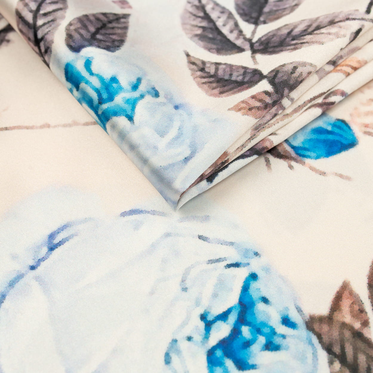 Tkanina satyna z wierzchu delikatnie błyszcząca i gładka, od spodu miękka i matowa.