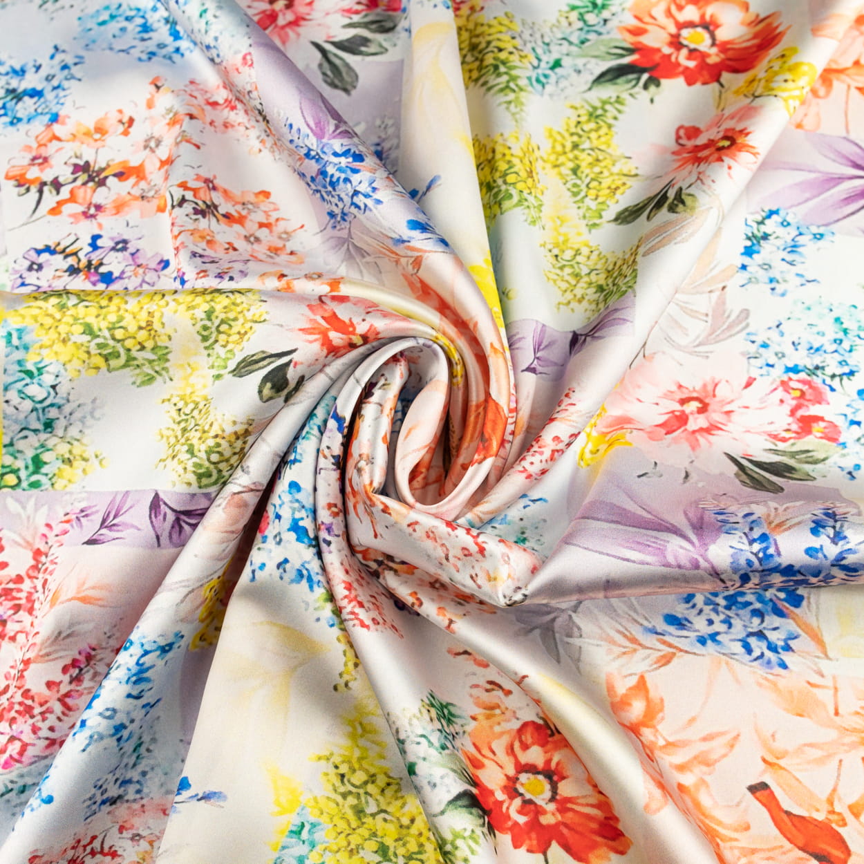 Tkanina Satyna lycra kolorowy wzor kwiaty ptaki