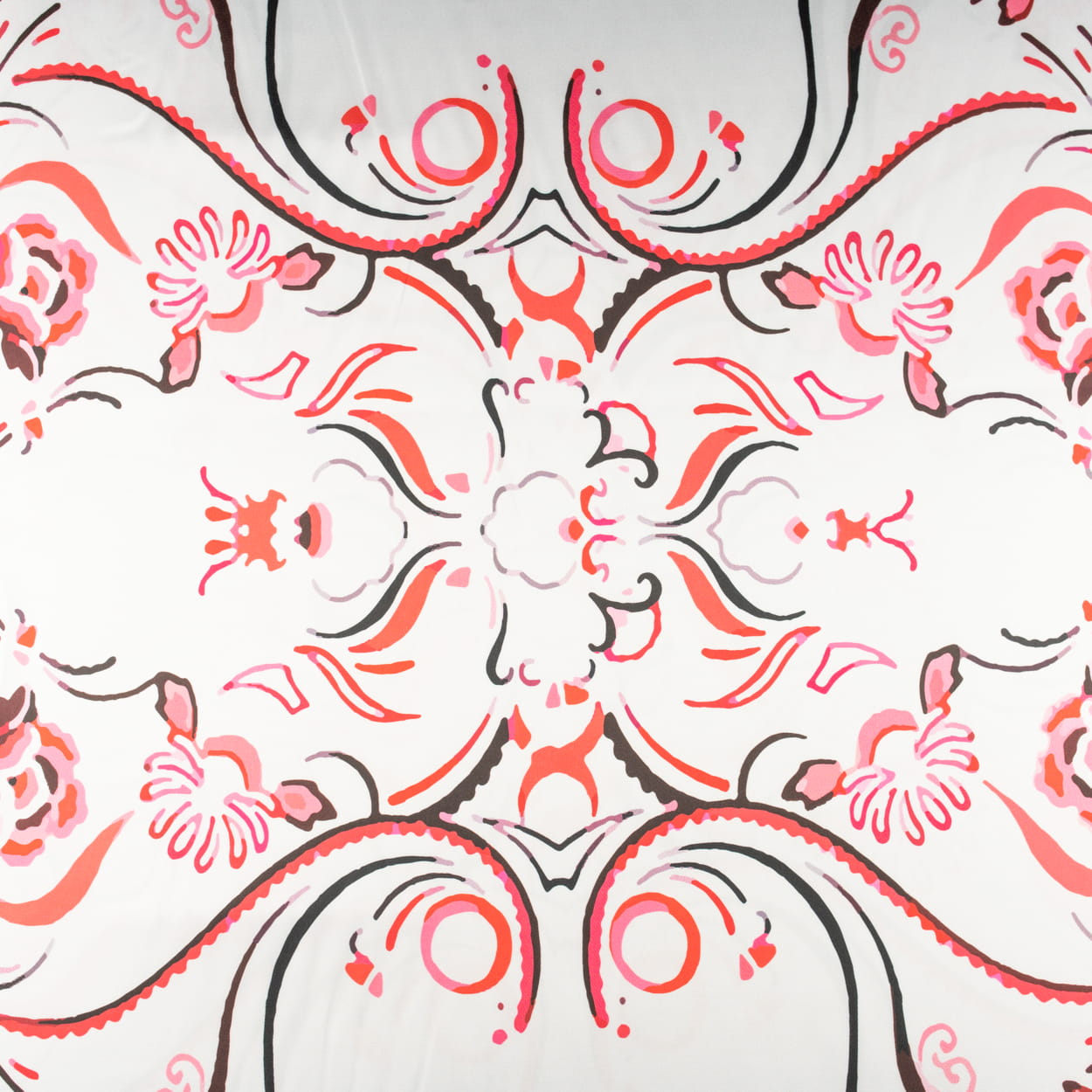 Tkanina Satyna lycra wzór biel fuksja greckie meandry