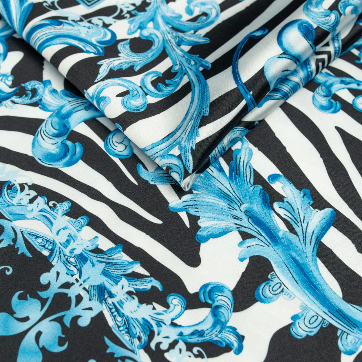 Tkanina Satyna lycra zebra wzór wzór włoski kolor niebieski