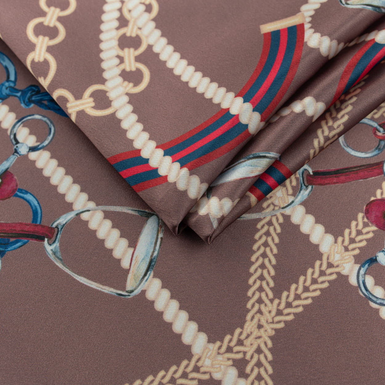 Tkanina Satyna wzór włoski konie brąz
