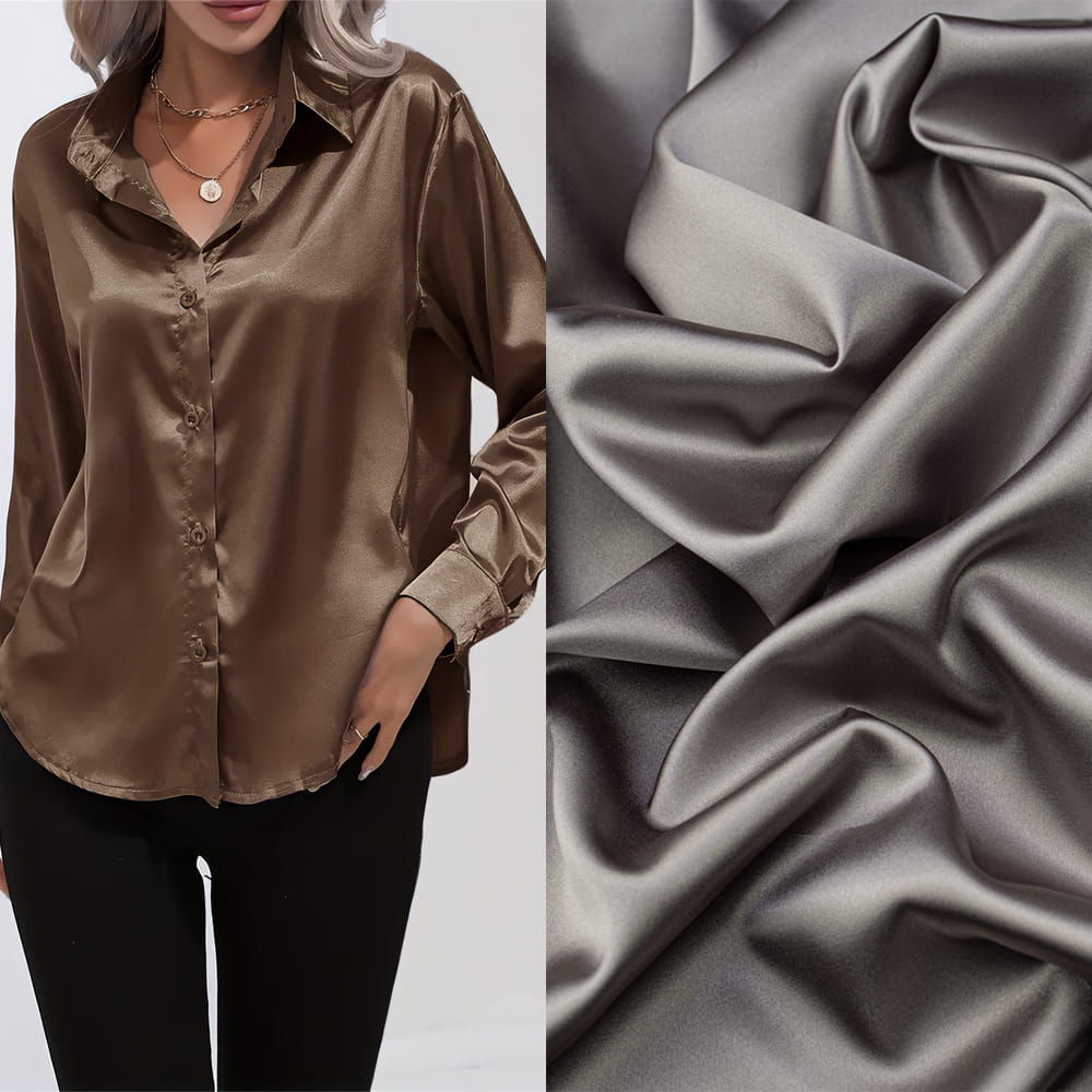 Zastosowanie satyny z lycrą w kolorze ciemnego beżowo-szarego